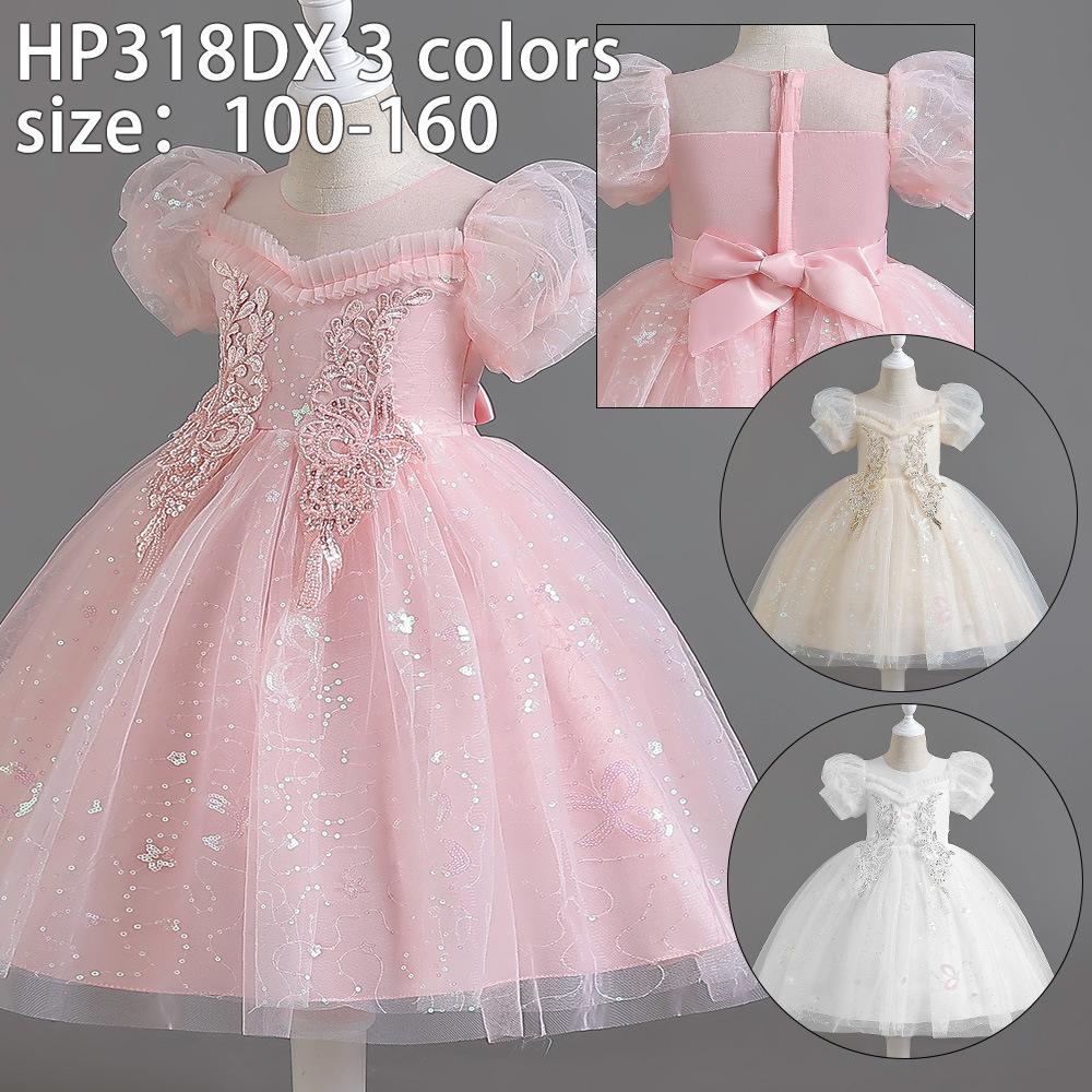 Vestido de niña de alta gama, estilo europeo y americano, para presentaciones de piano, disfraz infantil para niña de flores, vestido de princesa con lentejuelas y hilo abultado.