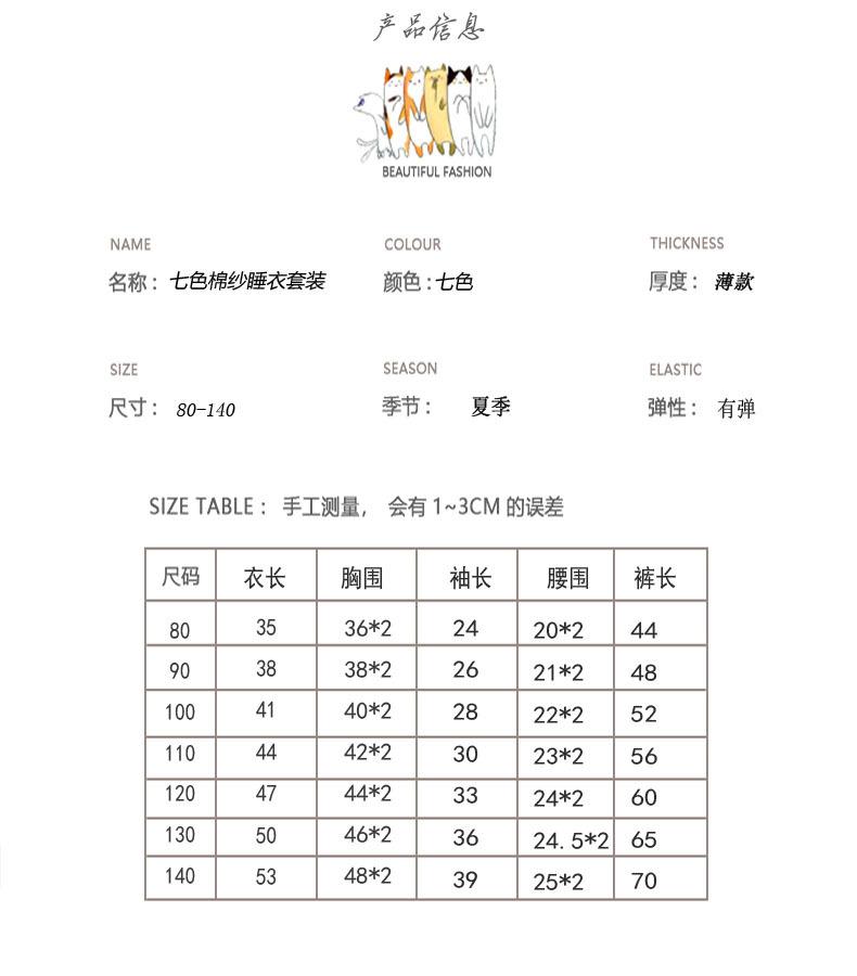 (Blue Clouds) 7-color cotton pajamas 2-piece set 130cm