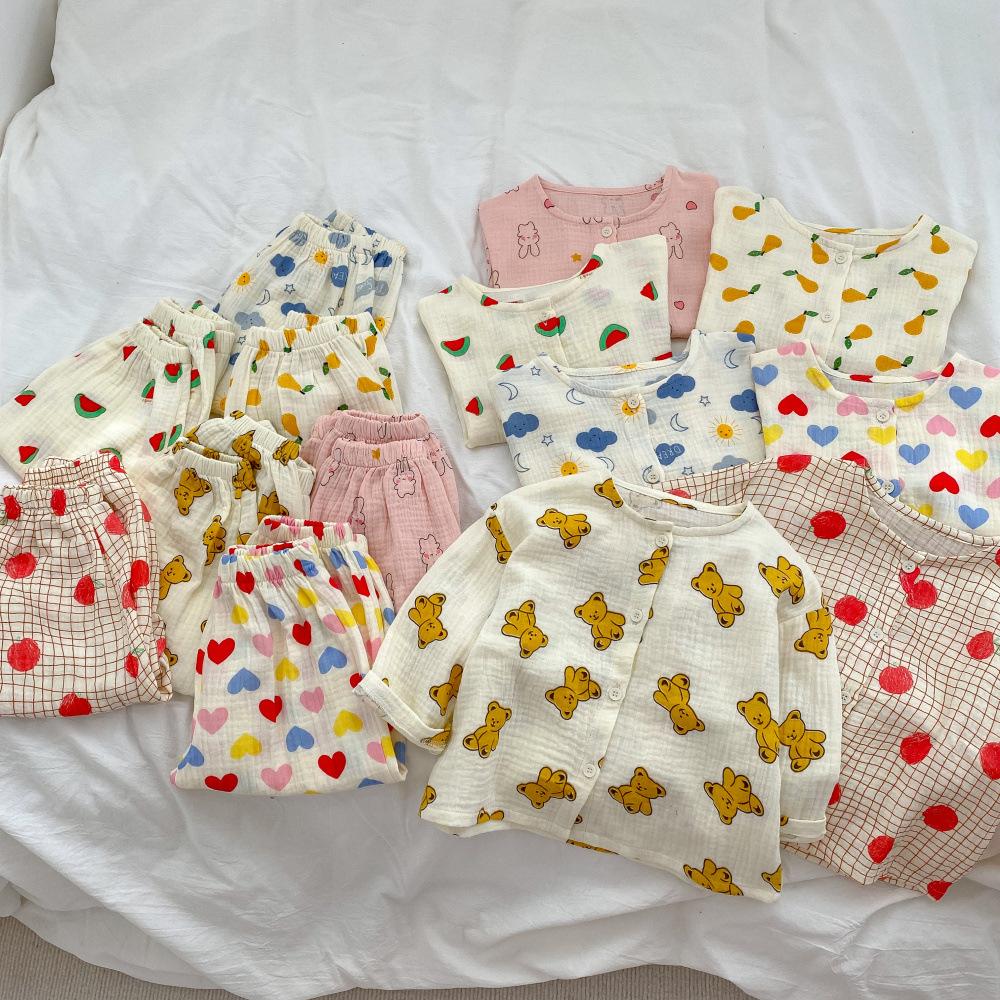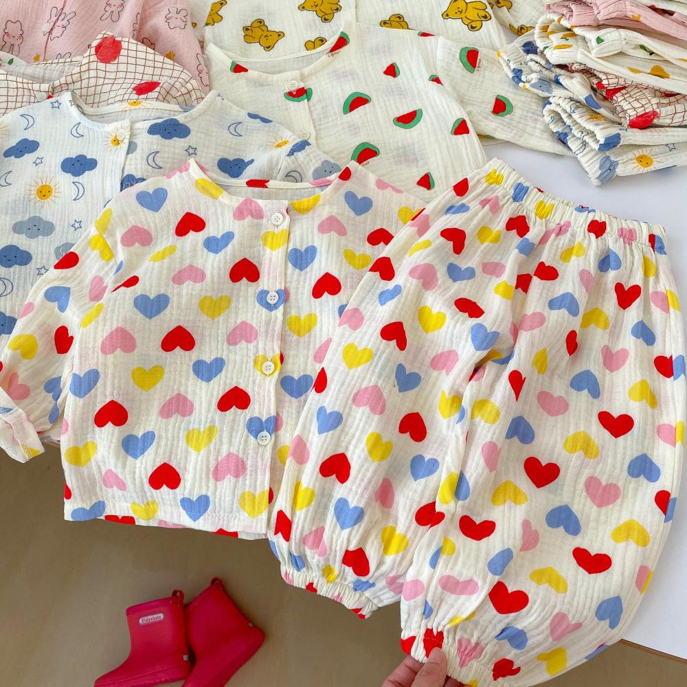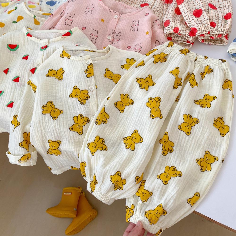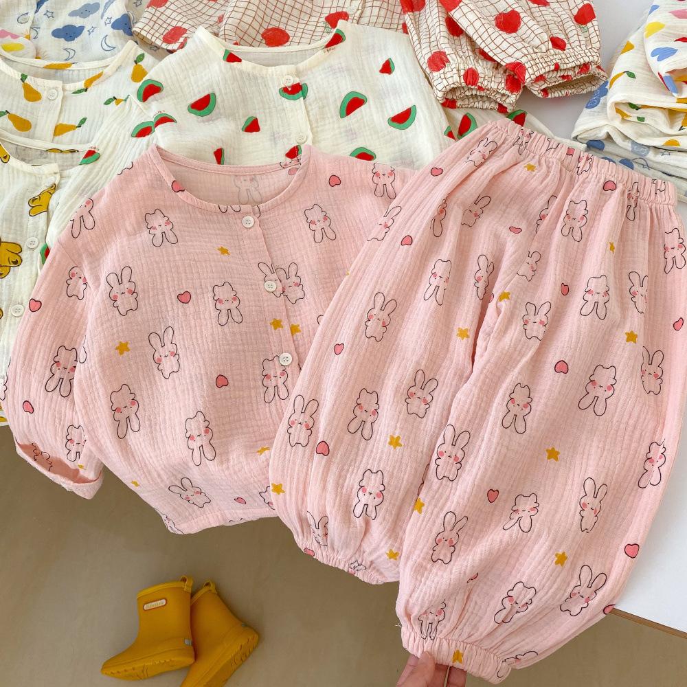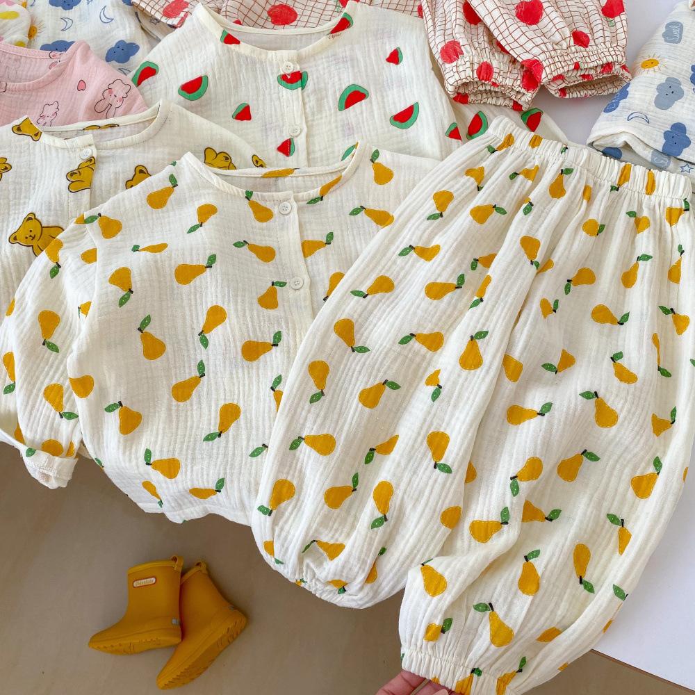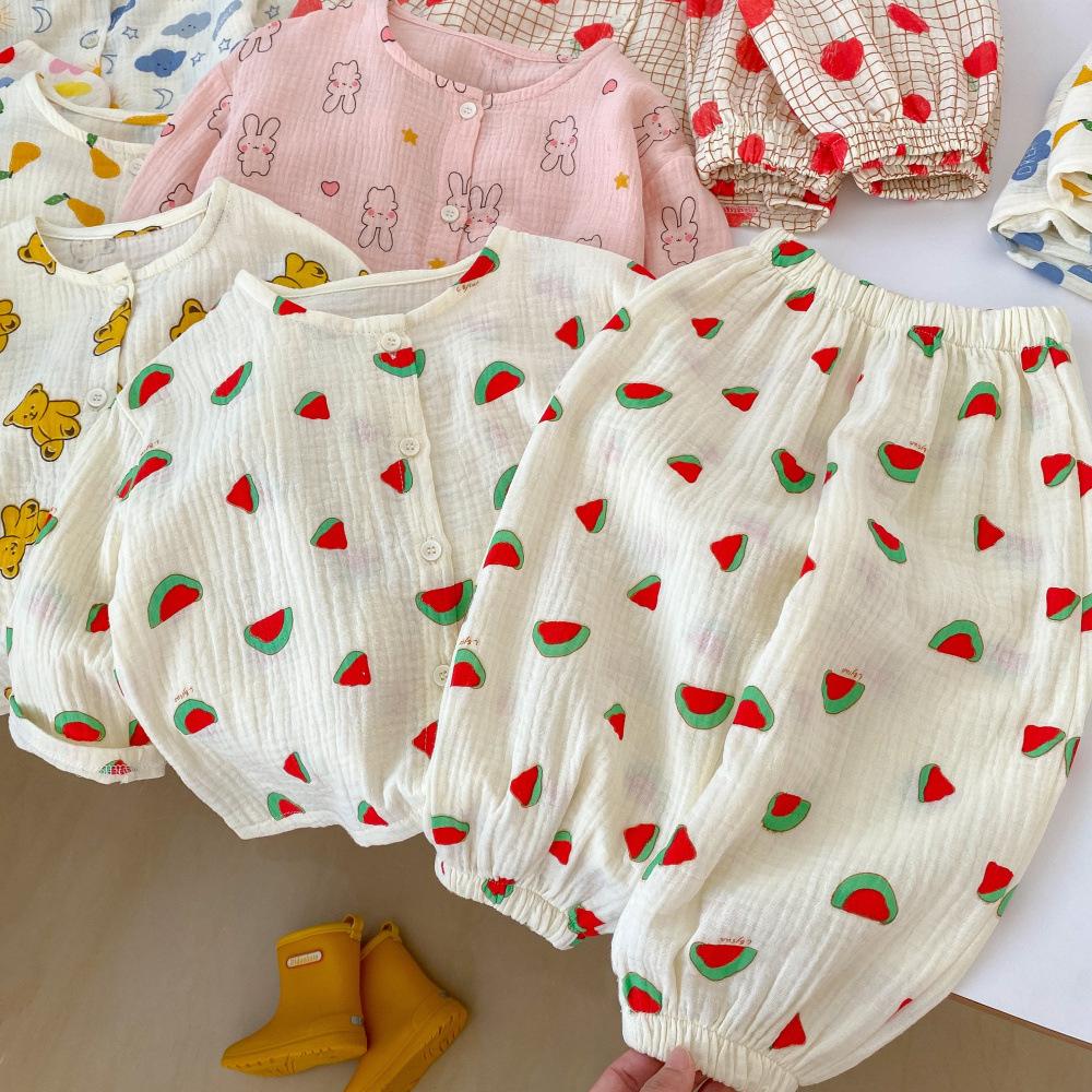 Pijamas para niños 2025 Otoño y Verano Algodón Estampado Hilado Conjunto de Ropa para el Hogar Pijamas de Dos Piezas Traje para Aire Acondicionado para Niños y Niñas