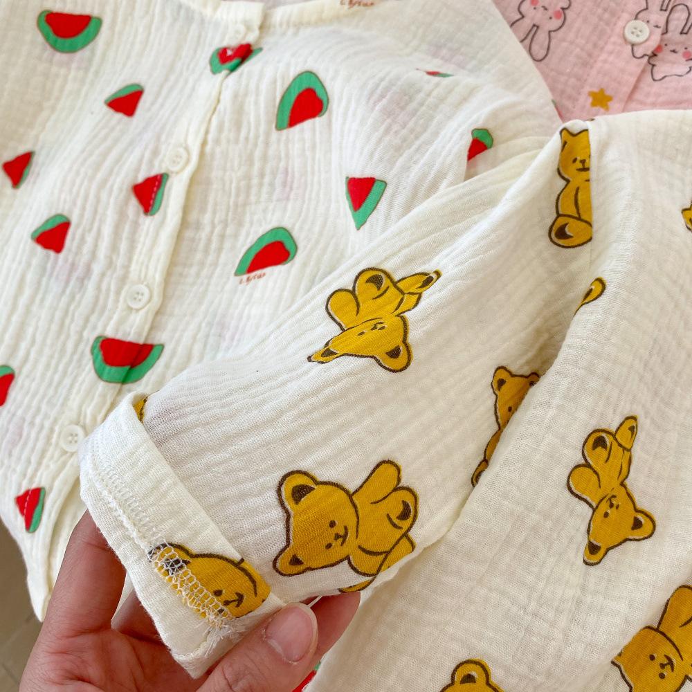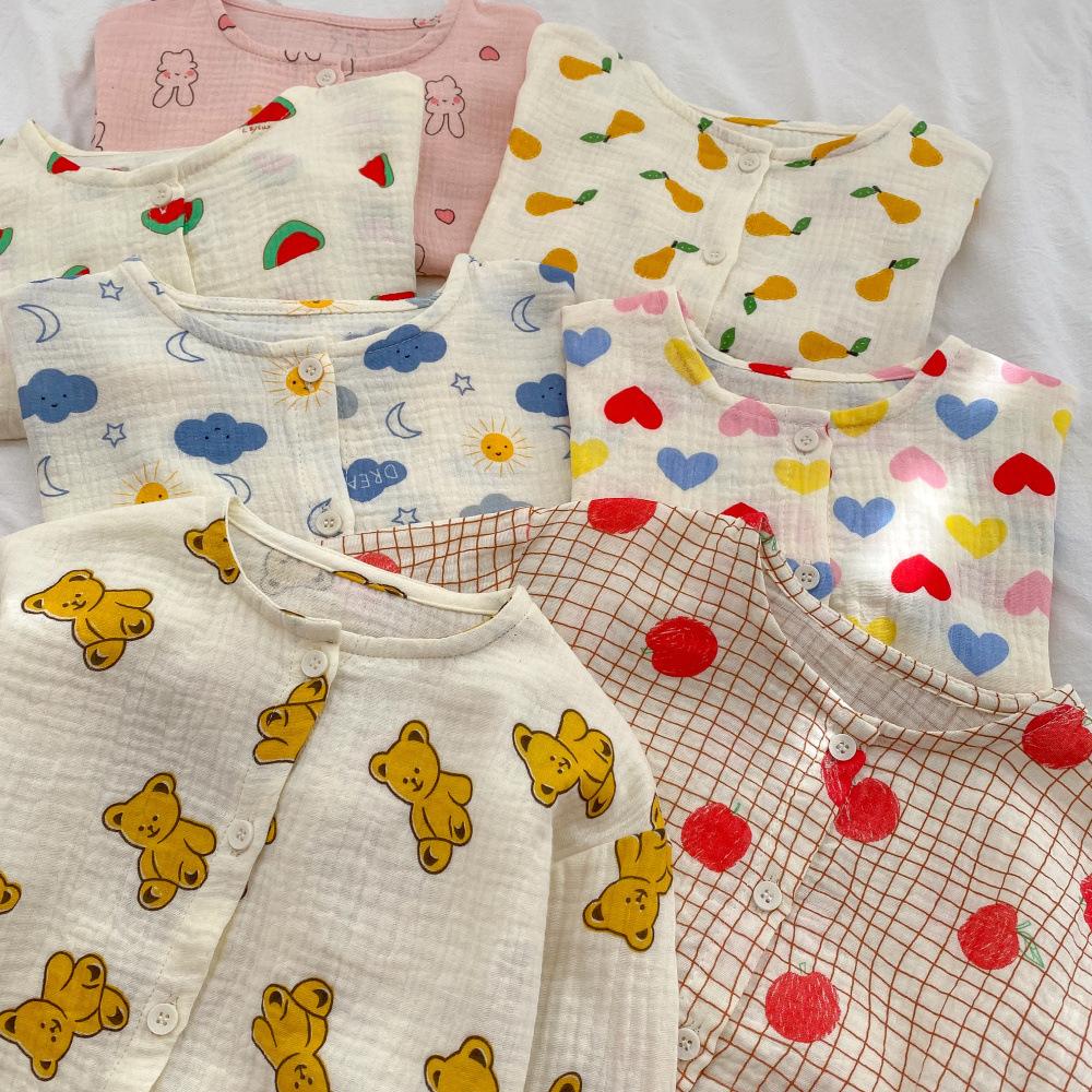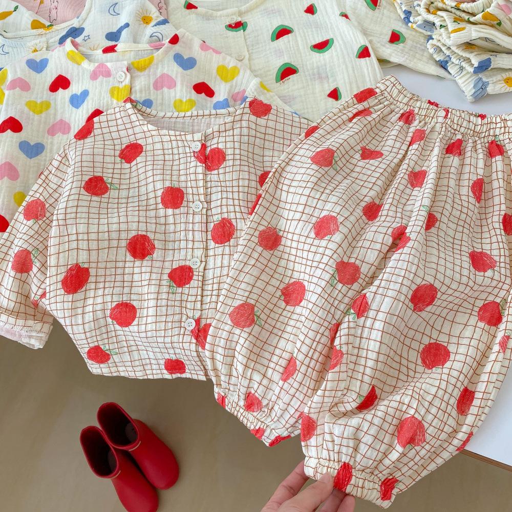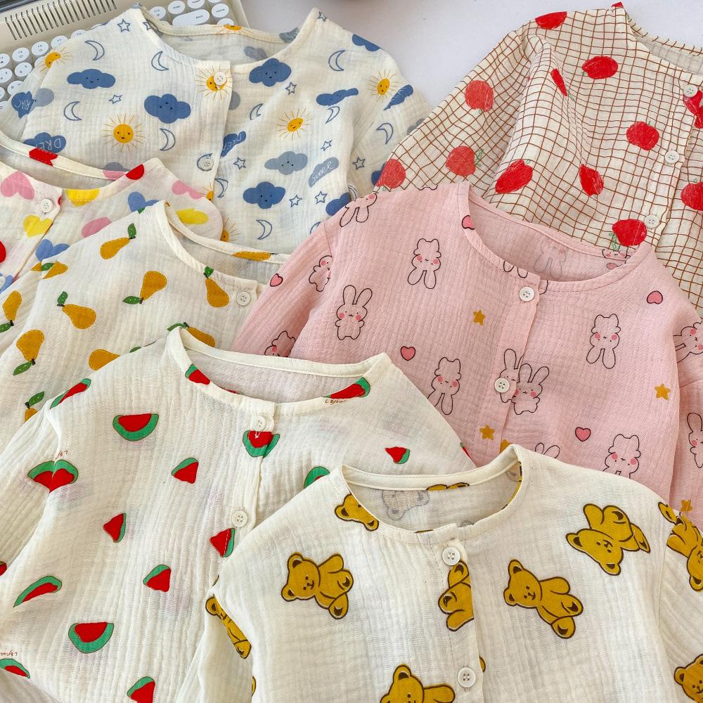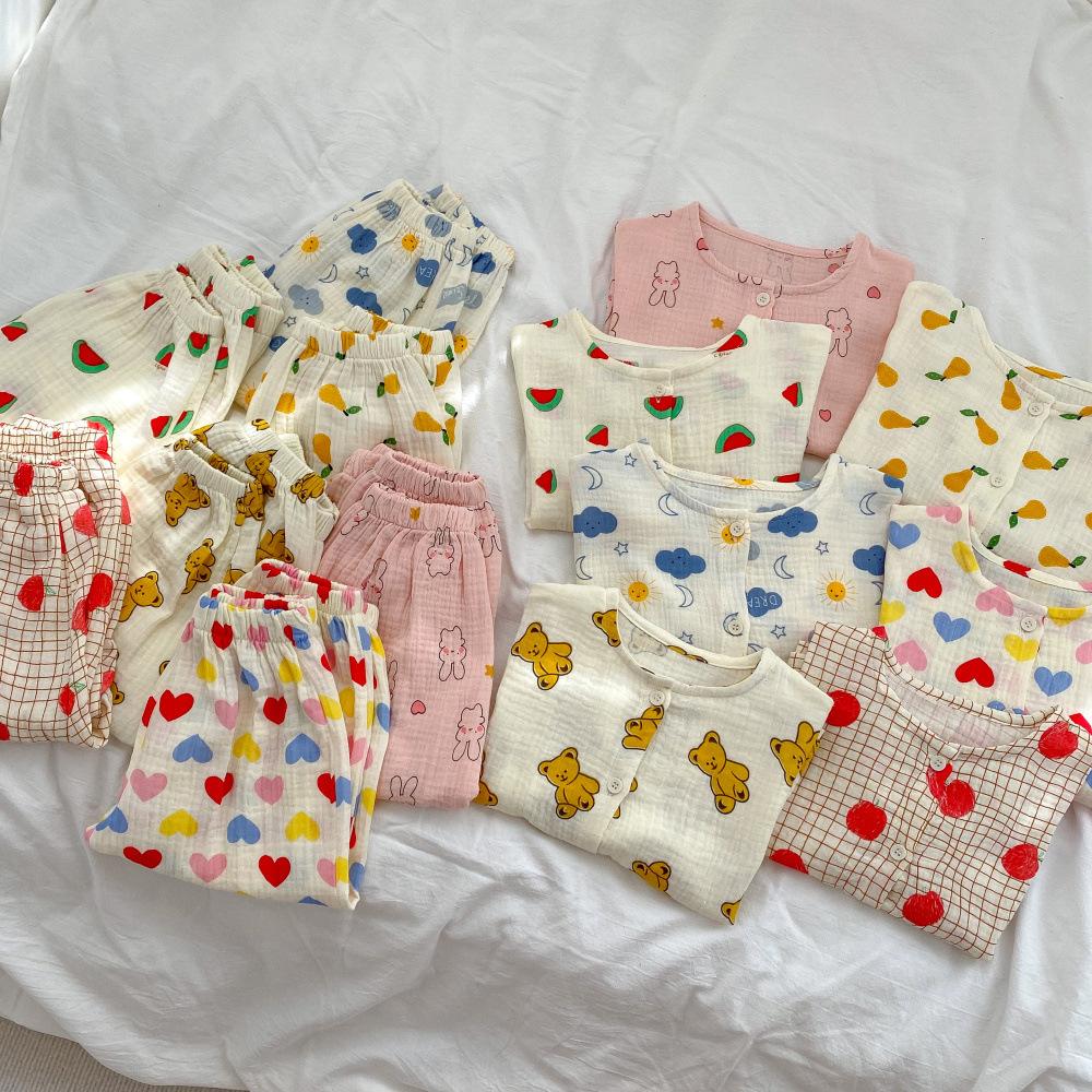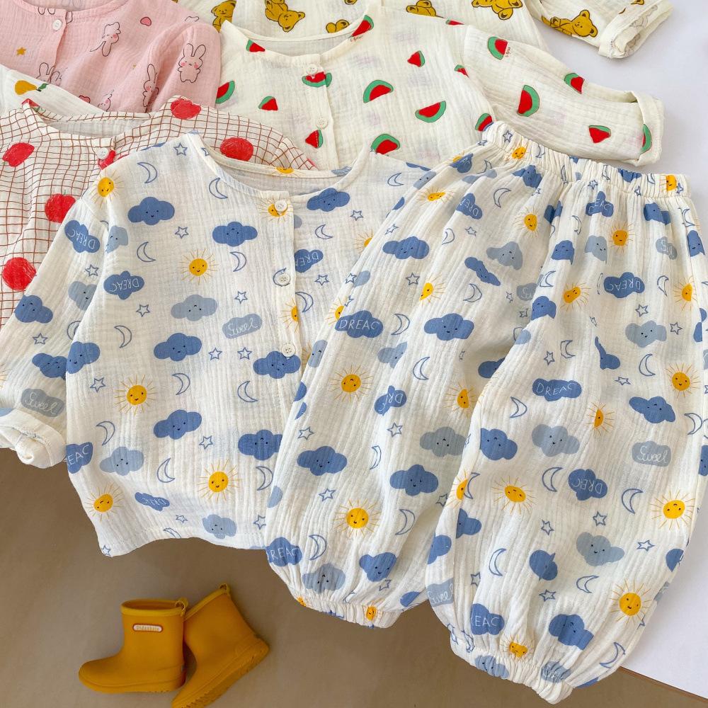 Pijamas para niños 2025 Otoño y Verano Algodón Estampado Hilado Conjunto de Ropa para el Hogar Pijamas de Dos Piezas Traje para Aire Acondicionado para Niños y Niñas