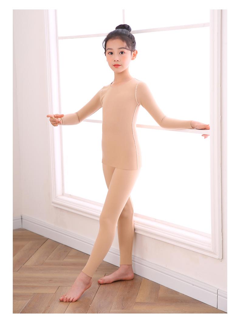Conjunto de ropa interior térmica para niñas, otoño e invierno, forro polar, camiseta interior sin costuras de color carne, para niñas de talla mediana y grande, ropa de otoño de terciopelo, pantalones largos