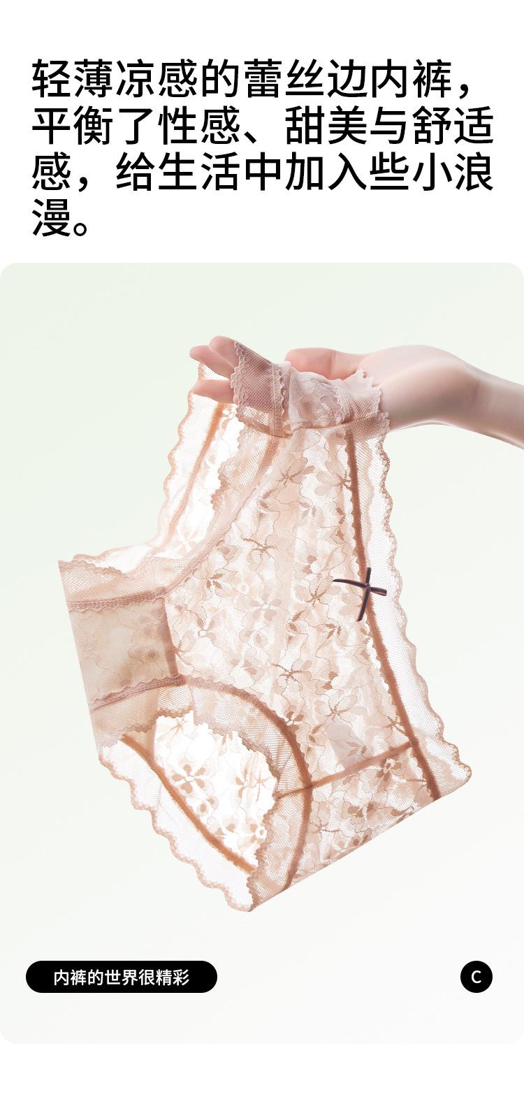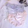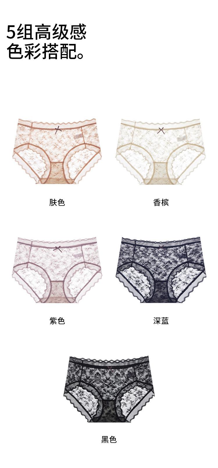 Nueva ropa interior de mujer de encaje sexy japonesa de color sólido de malla jacquard de puro deseo, calzoncillos de cintura media de secado rápido