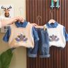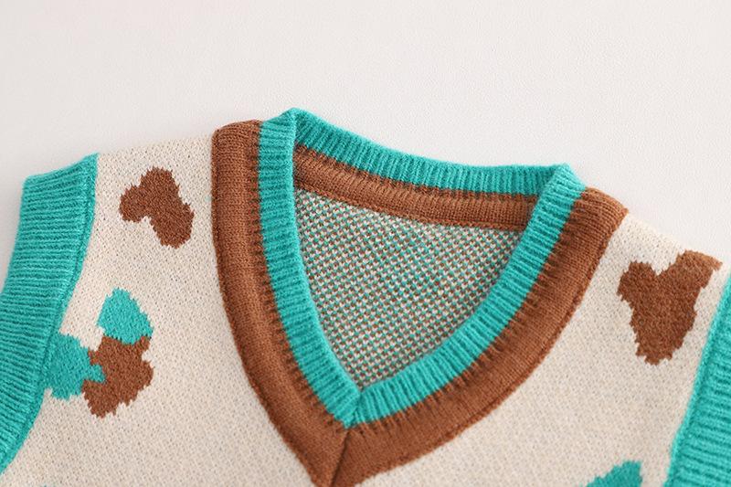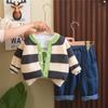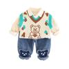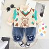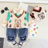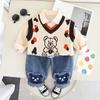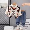 Traje de niño, ropa de primavera y otoño 2023, nueva ropa para niños, suéter de dibujos animados de otoño para niños, chaleco, traje de tres piezas, ropa de moda