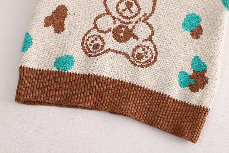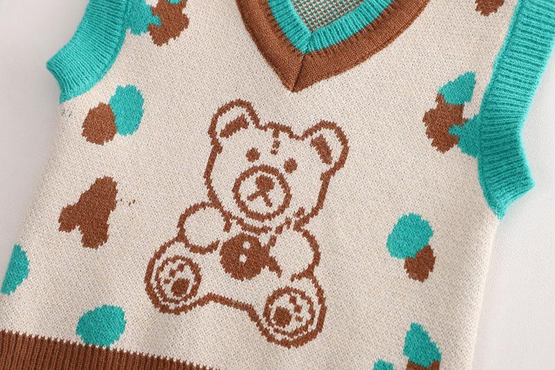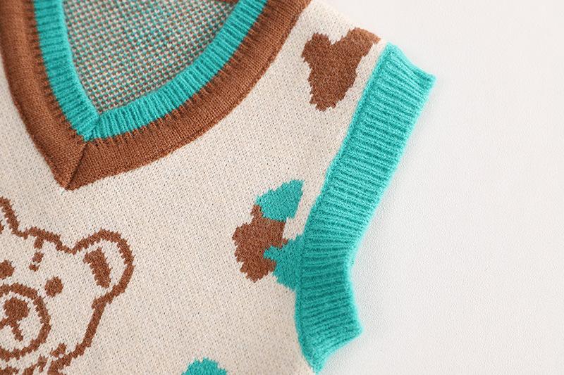 Brown bear sweater vest three-piece set, Blue Sitting Bear sweater vest three-piece set