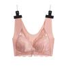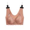 Sujetador deportivo sin aros de talla grande con encaje y abertura frontal con hebilla para mujer, sujetador con copas traseras fruncidas para realce de pecho.
