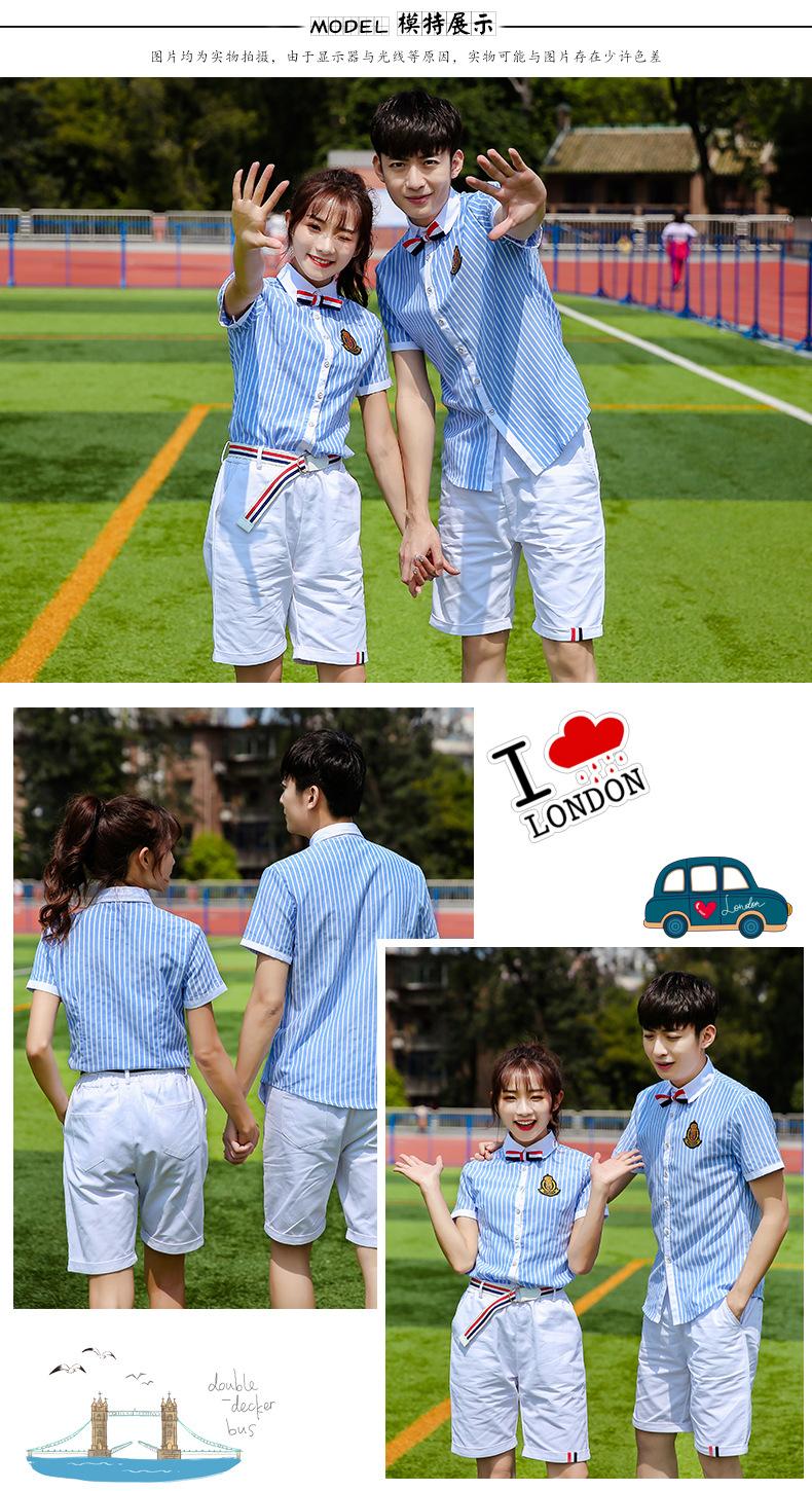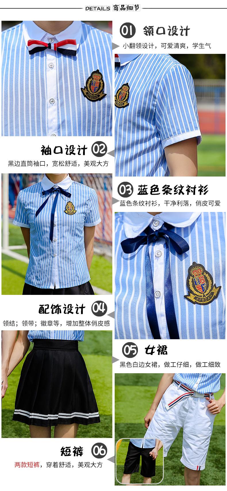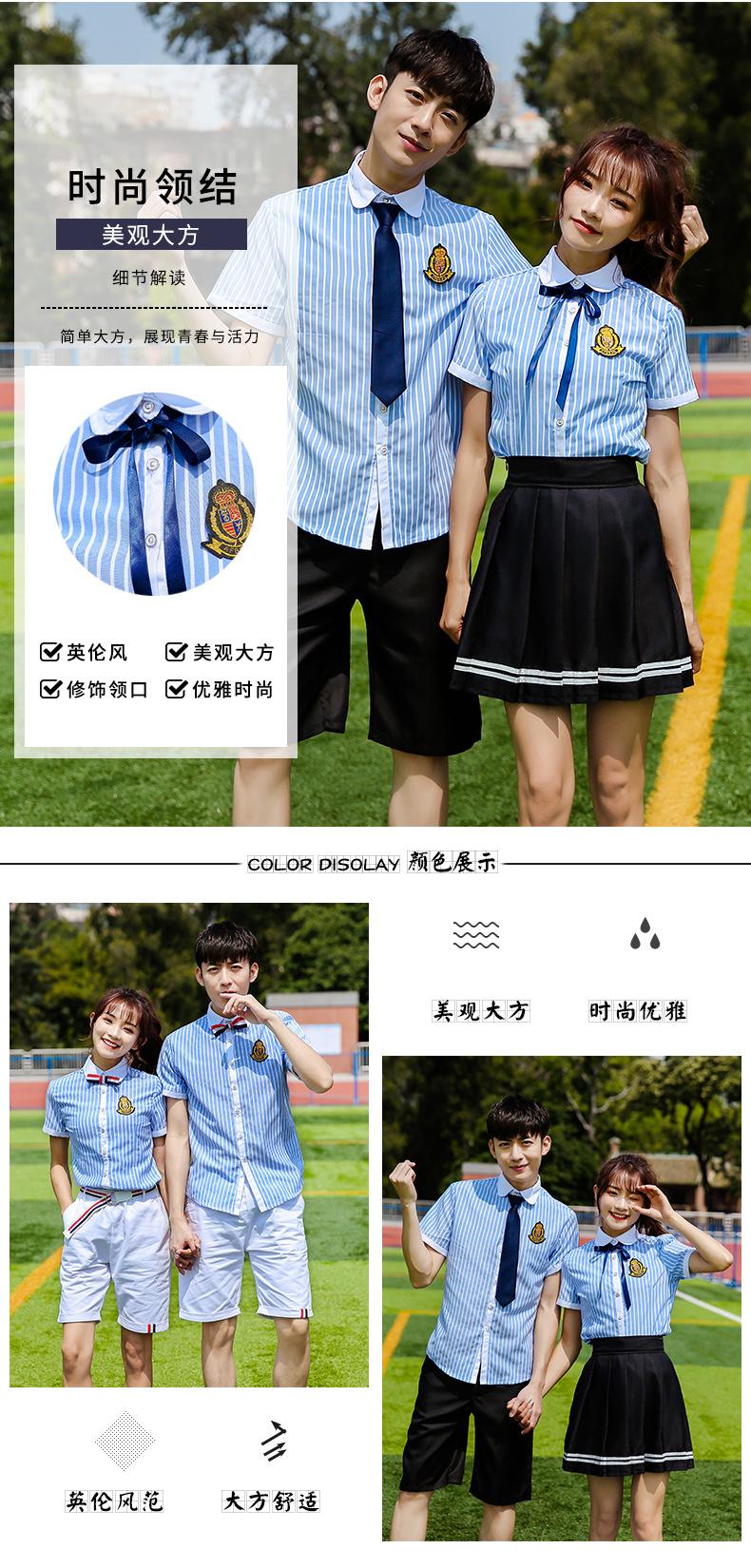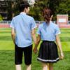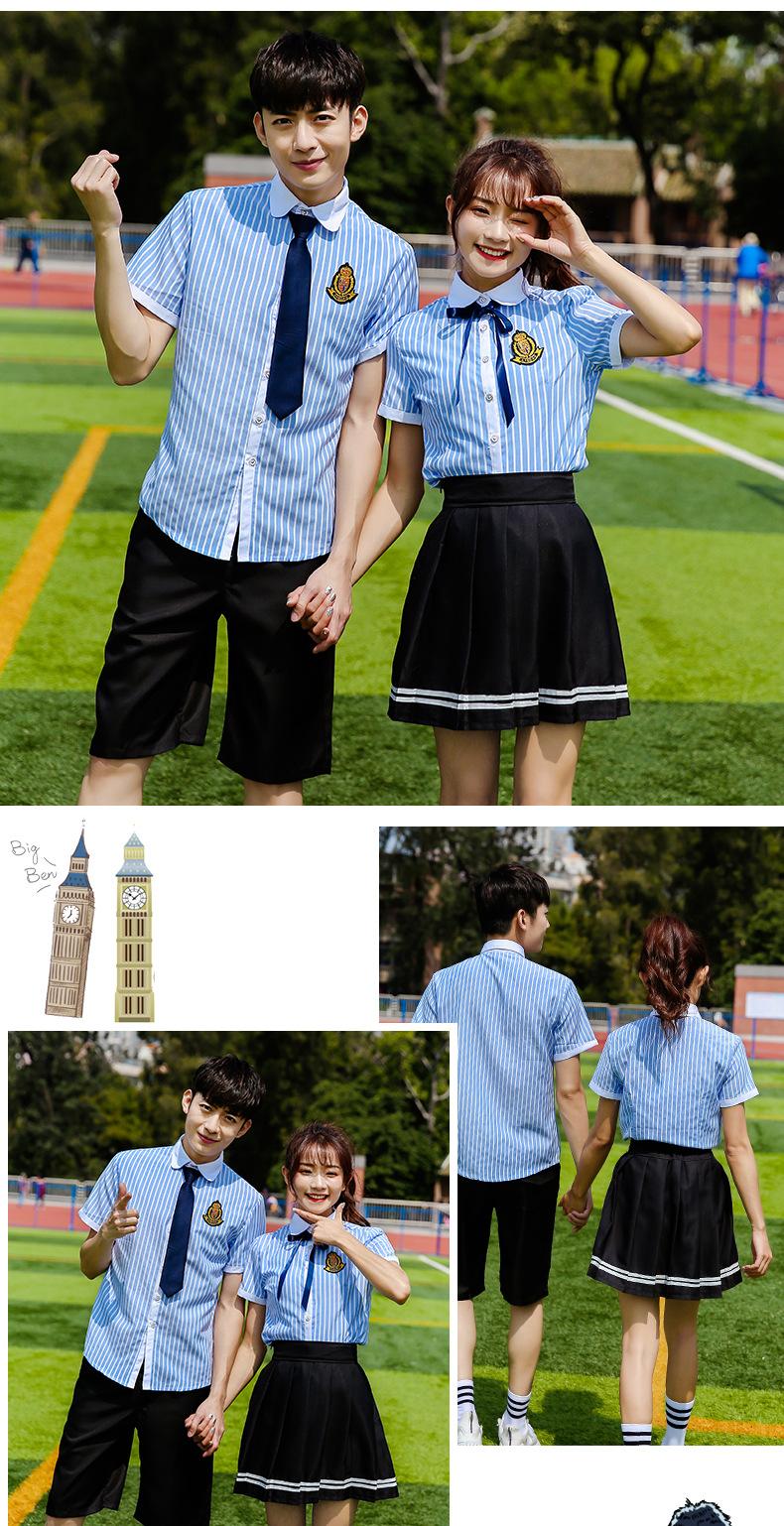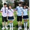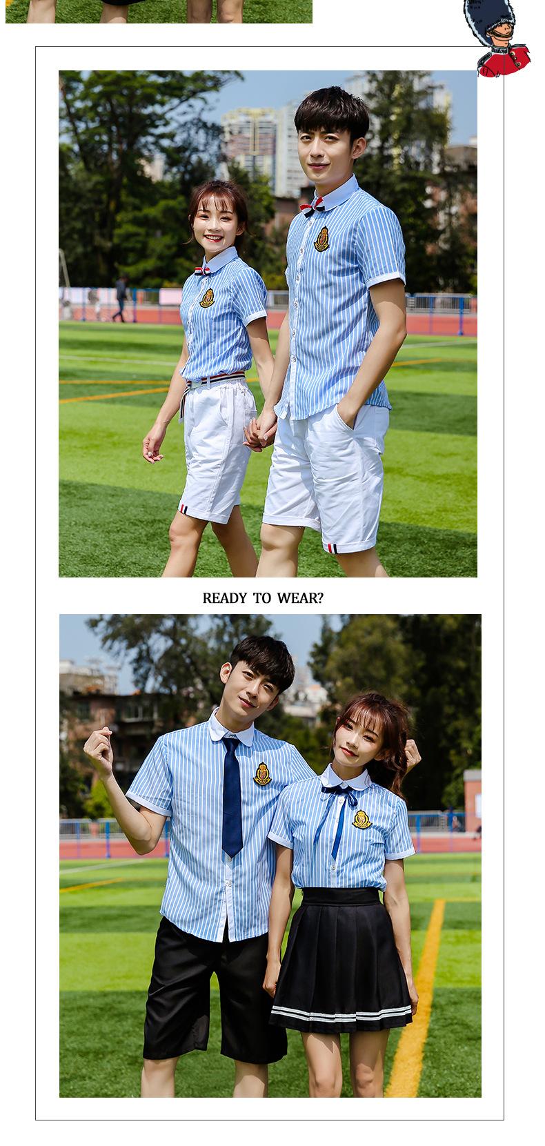 Verano Nuevo Estilo Uniformes de Estudiante Estilo Universitario Traje de Camisa Rayada Azul Uniformes de Clase de Graduación para Estudiantes de Primaria y Secundaria