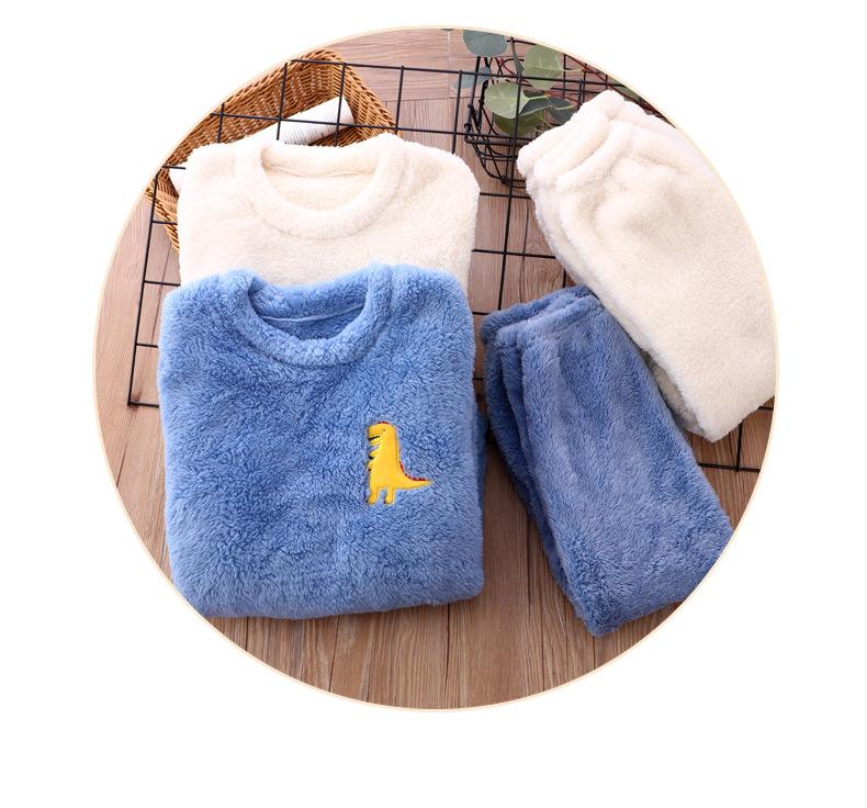 Conjunto de pijama de franela para niños, ropa de casa, pijamas gruesos y cálidos para niños y niñas de mediana edad y mayores