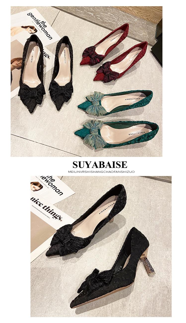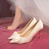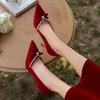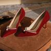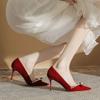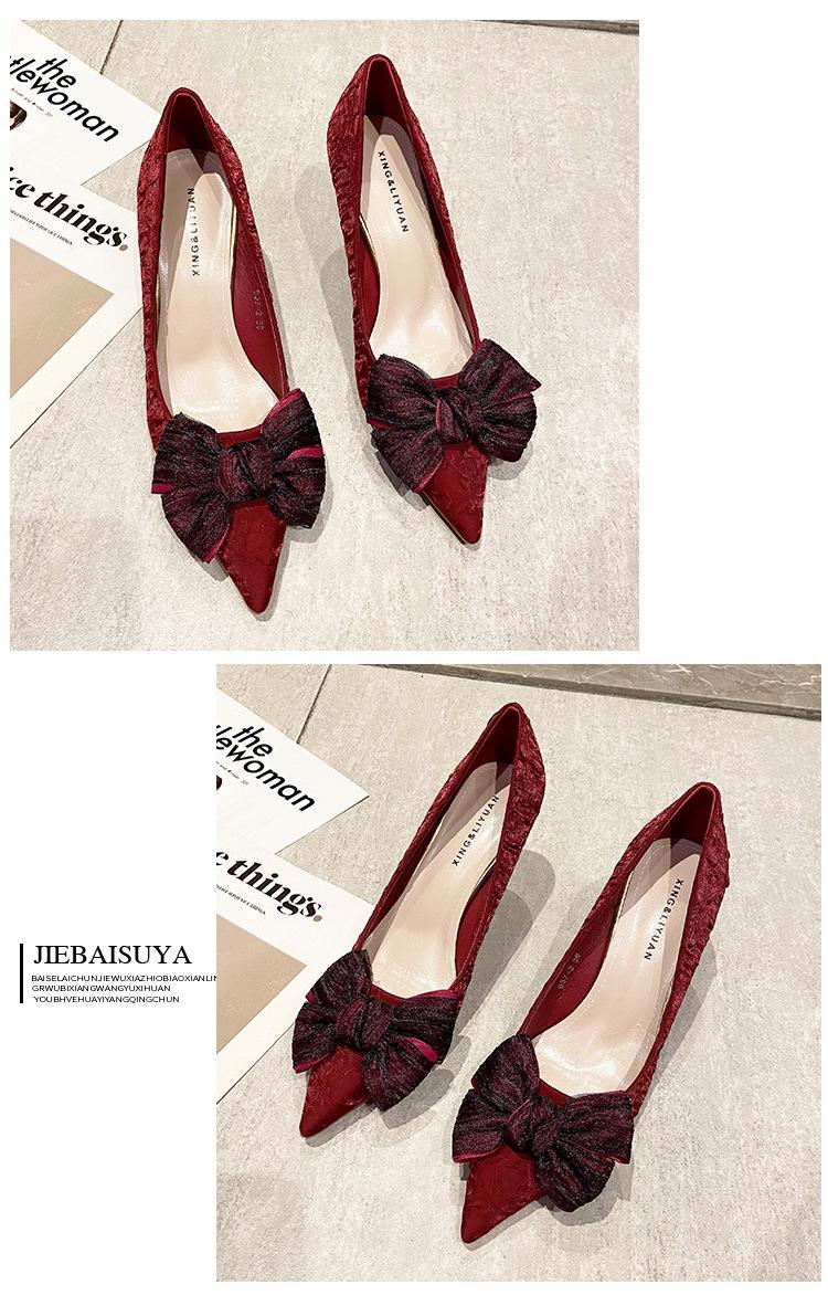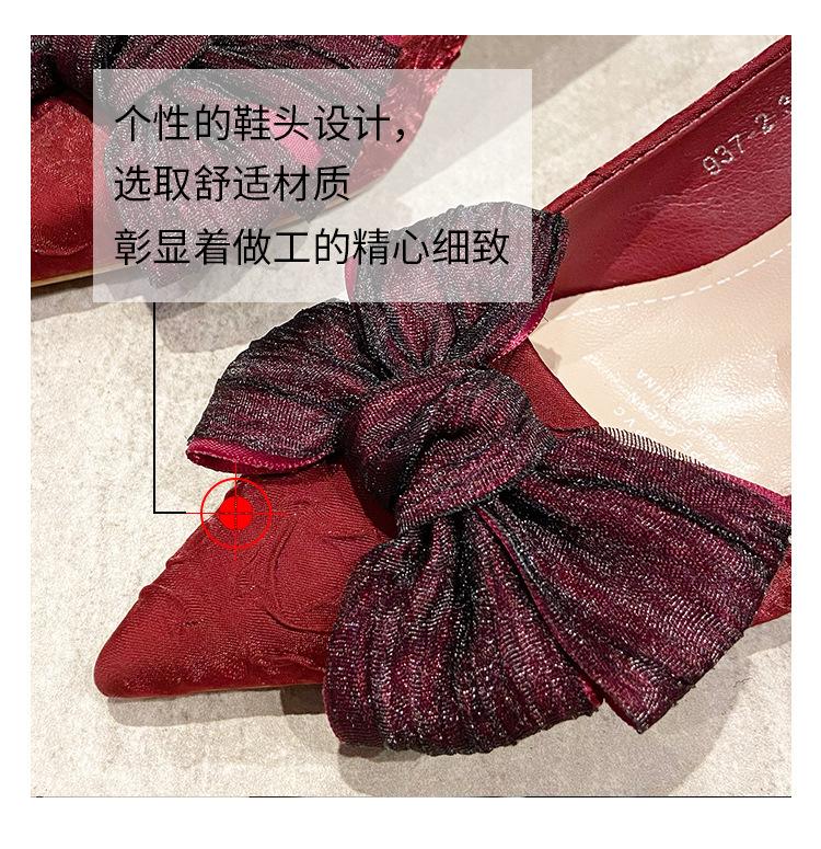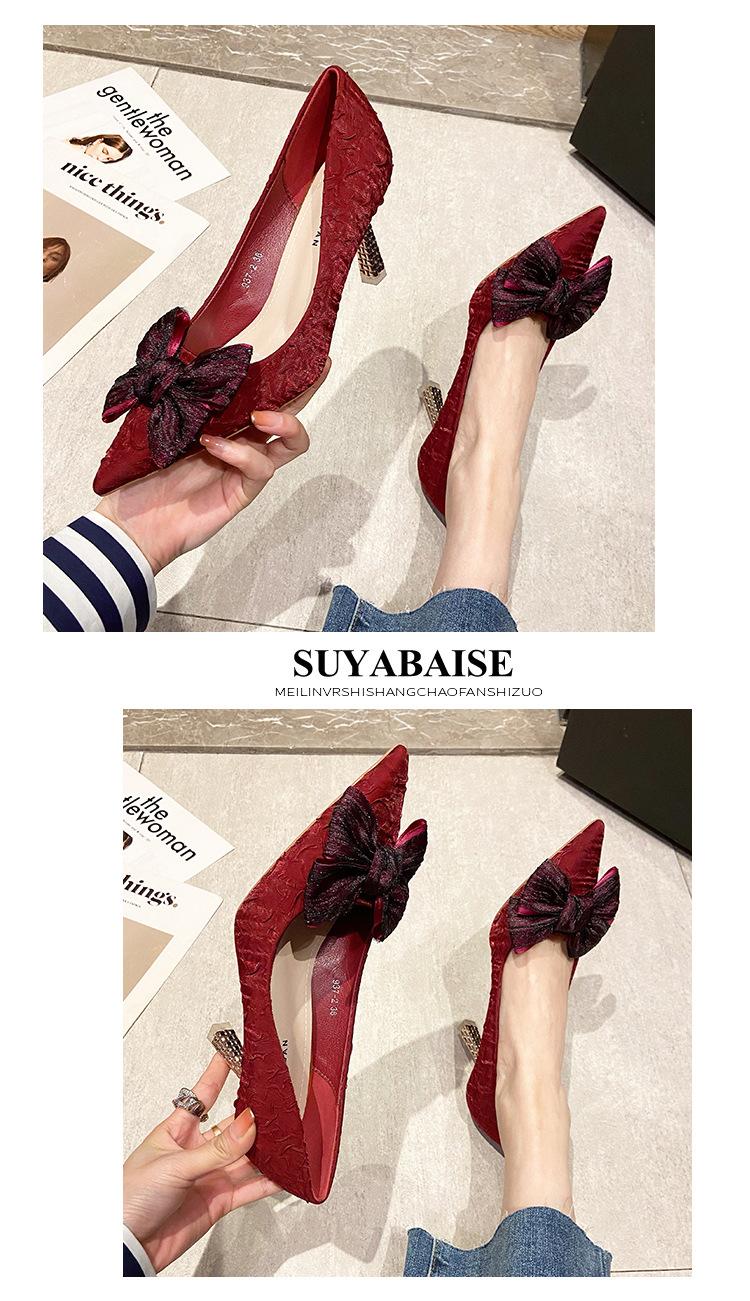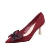 Zapatos Rojos de Boda Tacones Altos Zapatos de Salón Poco Profundos de Aguja Primavera 2024 Nuevo Punta Afilada Moño Flats Zapatos de Novia para Mujer