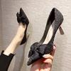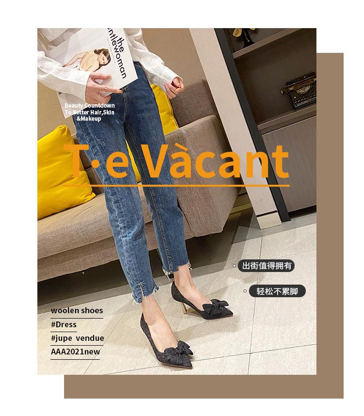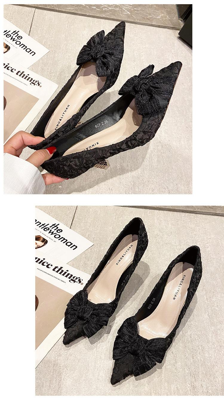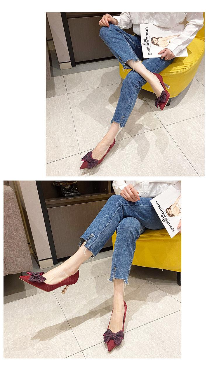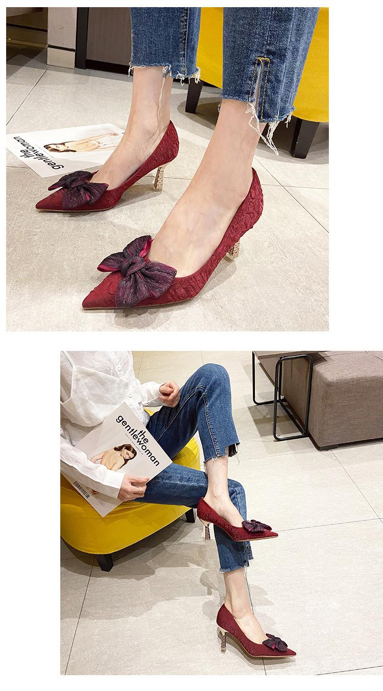 Zapatos Rojos de Boda Tacones Altos Zapatos de Salón Poco Profundos de Aguja Primavera 2024 Nuevo Punta Afilada Moño Flats Zapatos de Novia para Mujer