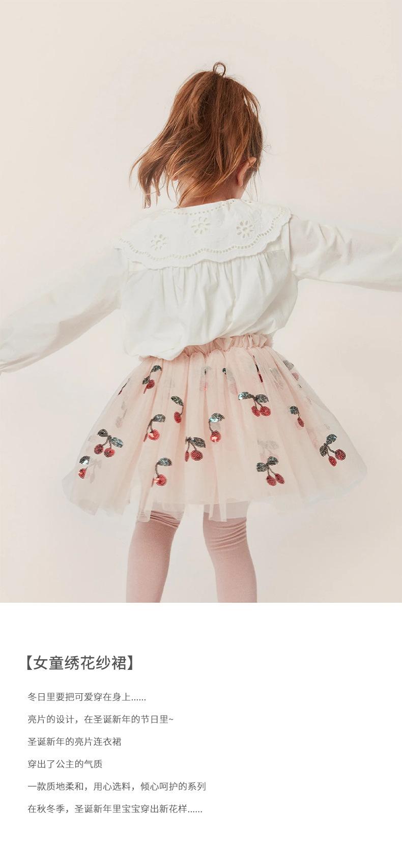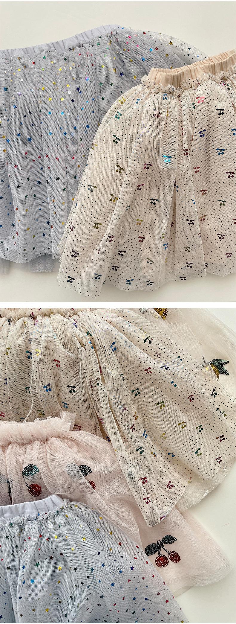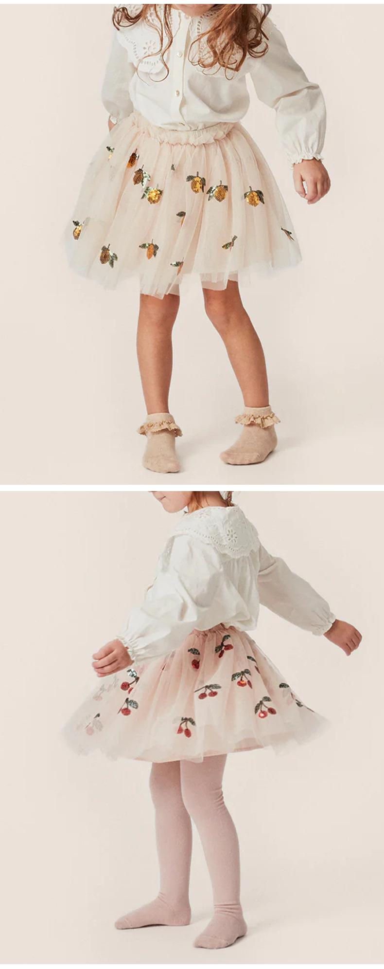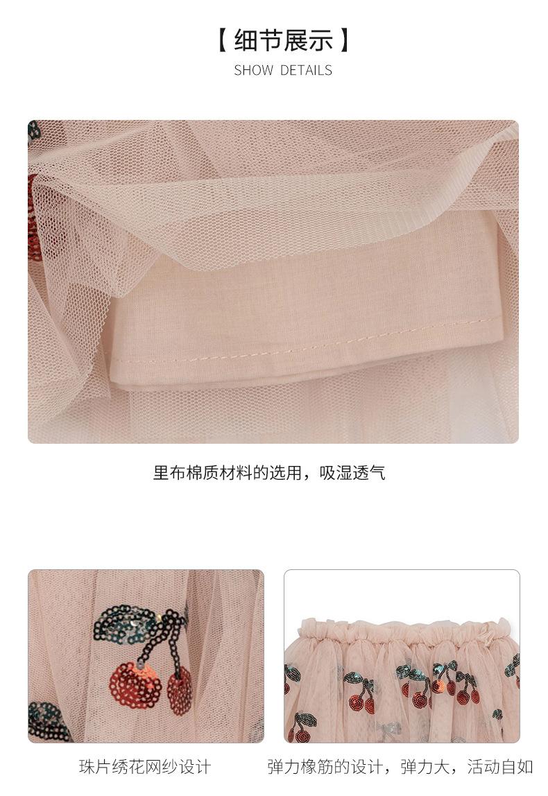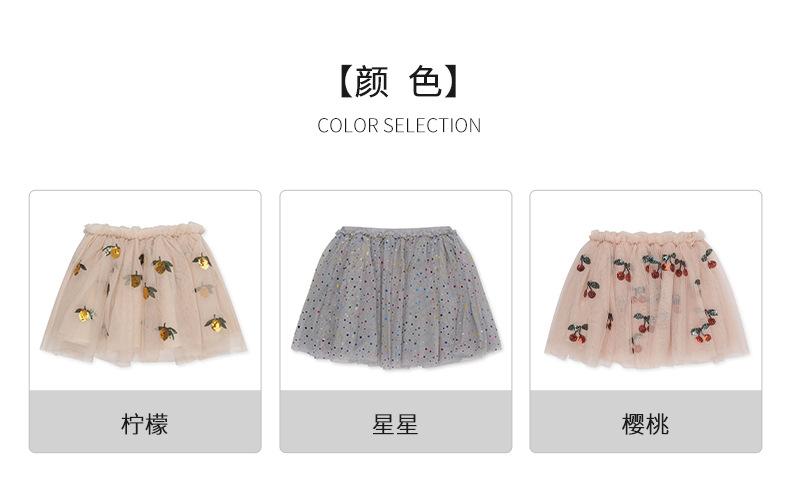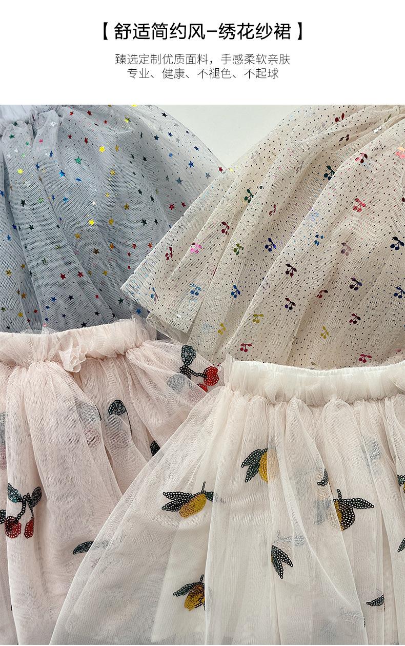 Falda para niñas, falda corta para niños, estilo súper occidental, falda de gasa bordada con cerezas, falda suelta para niña de otoño europea y americana 2023