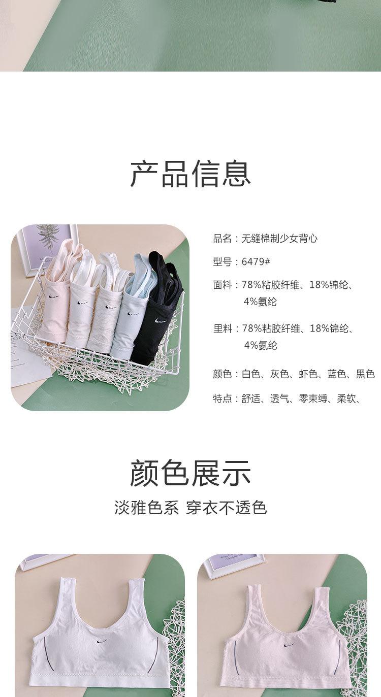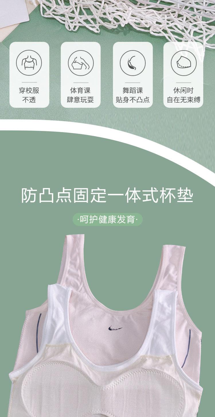 Sujetador sin costuras de una pieza con copa fija, cómodo y transpirable, tipo chaleco, para niñas jóvenes en desarrollo.