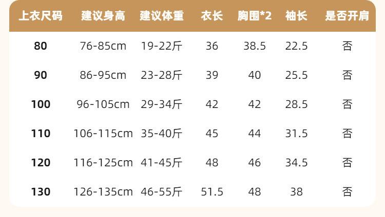 80cm, 90cm, 100cm, 110cm, 120cm, 130cm