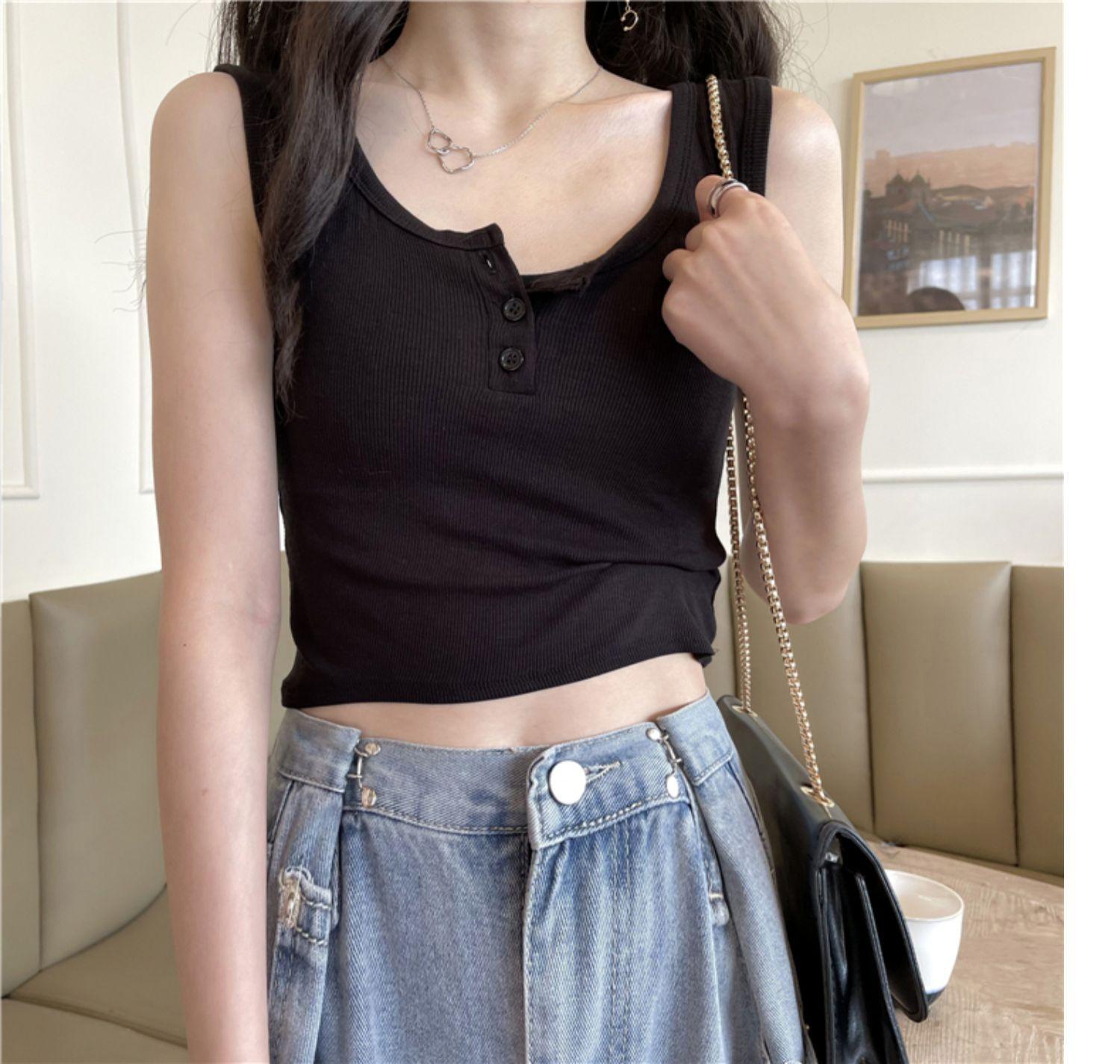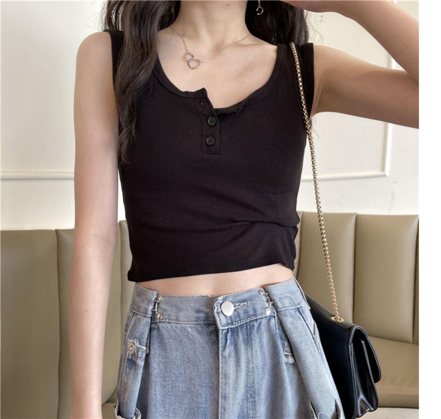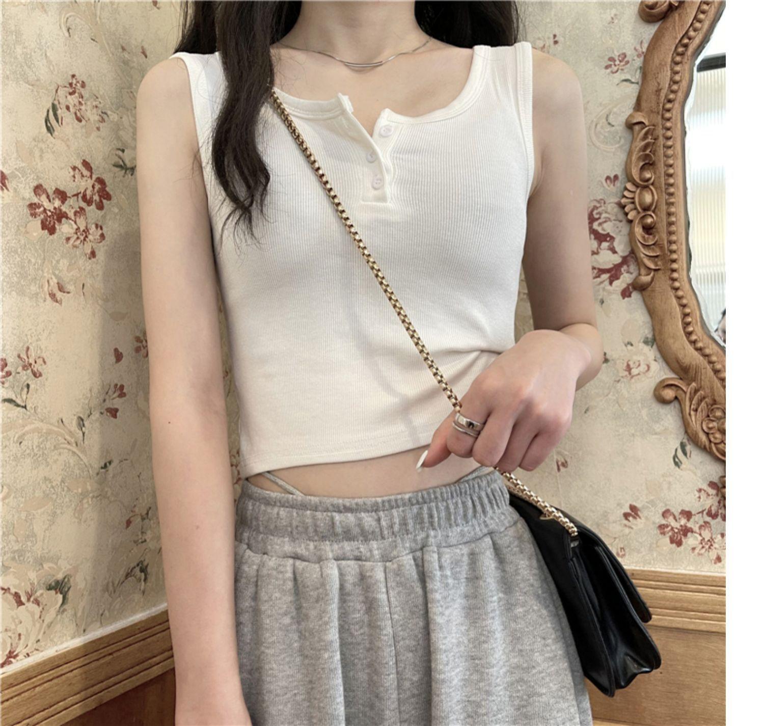 Chaleco interior corto Sense de nuevo diseño de nicho para mujer, nuevo chaleco exterior adelgazante de corte entallado de estilo coreano de verano.