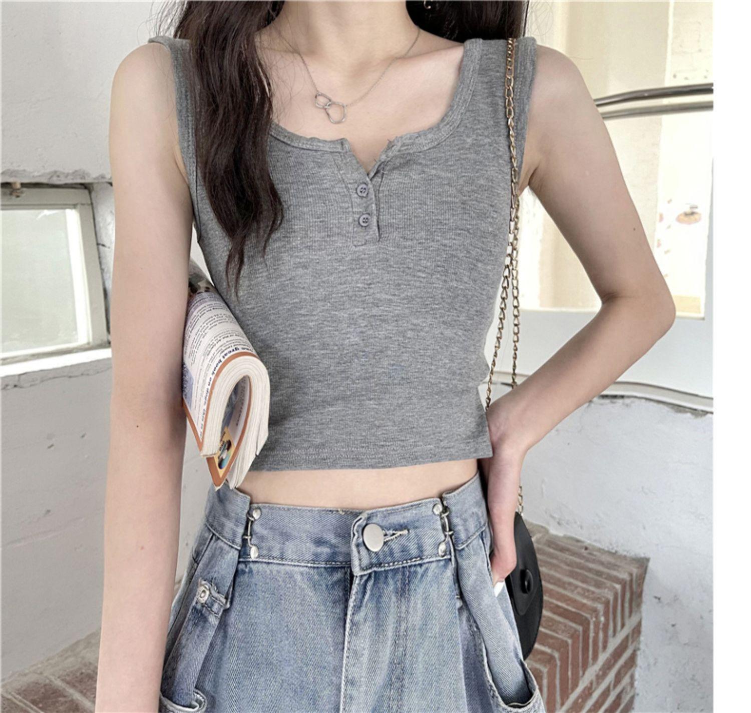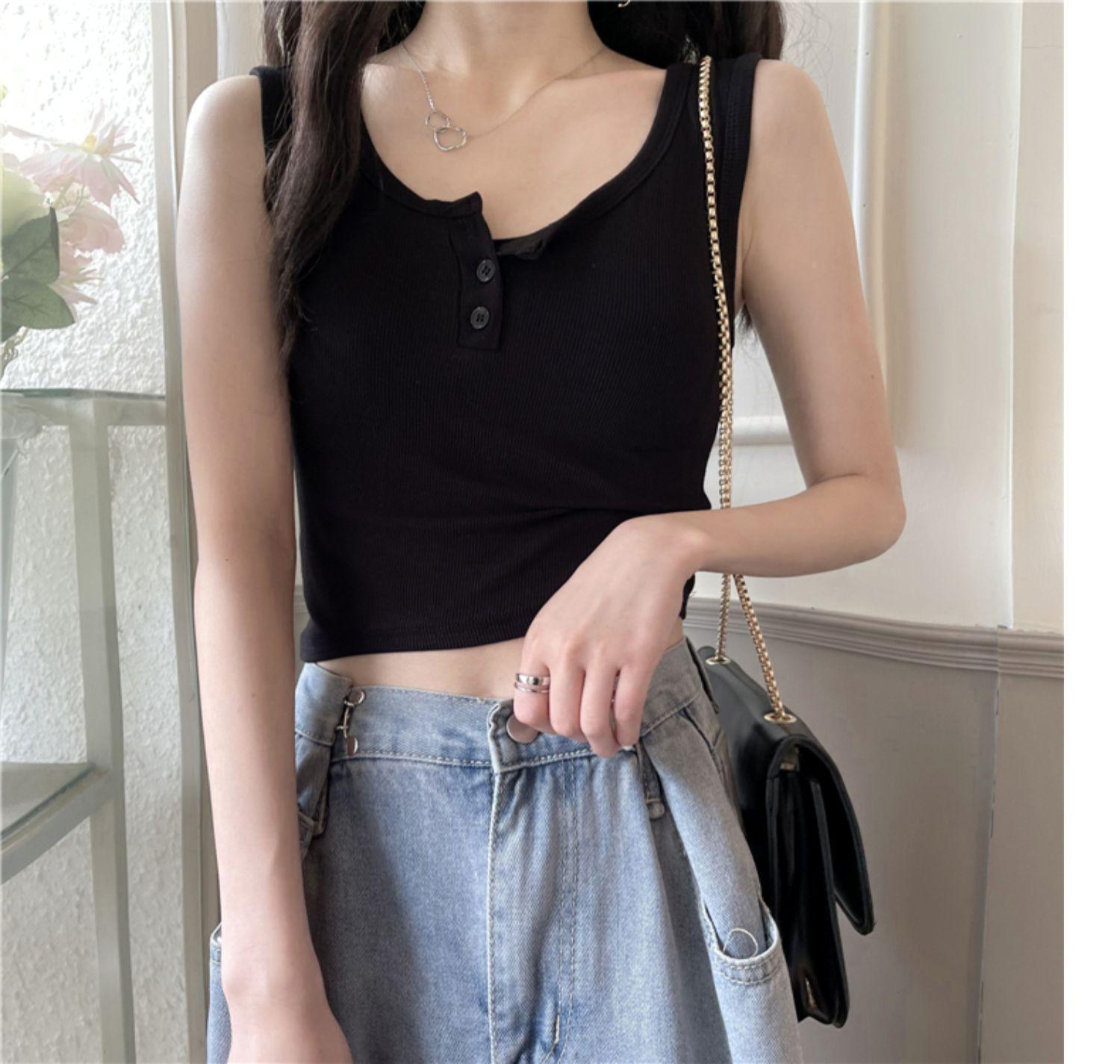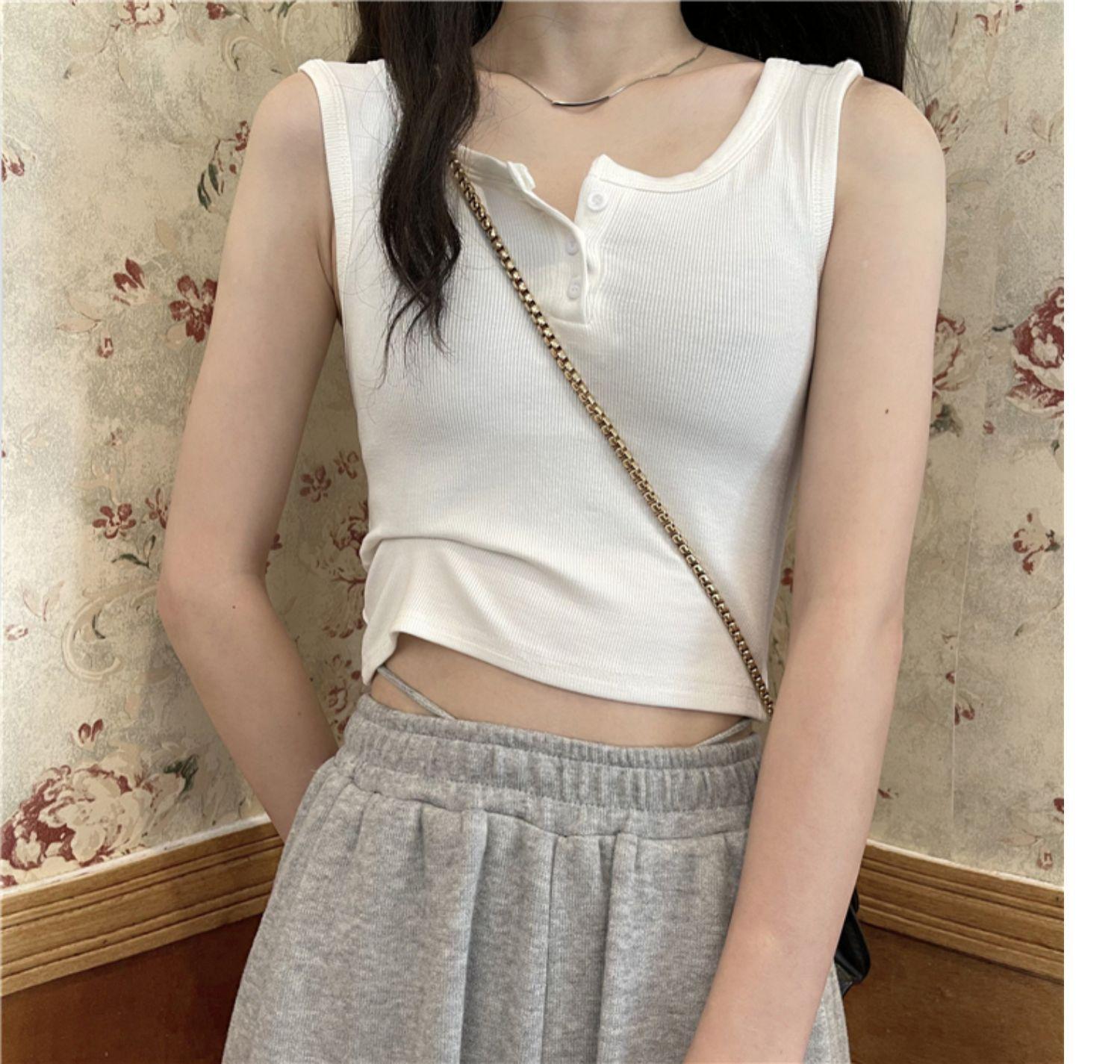 Chaleco interior corto Sense de nuevo diseño de nicho para mujer, nuevo chaleco exterior adelgazante de corte entallado de estilo coreano de verano.