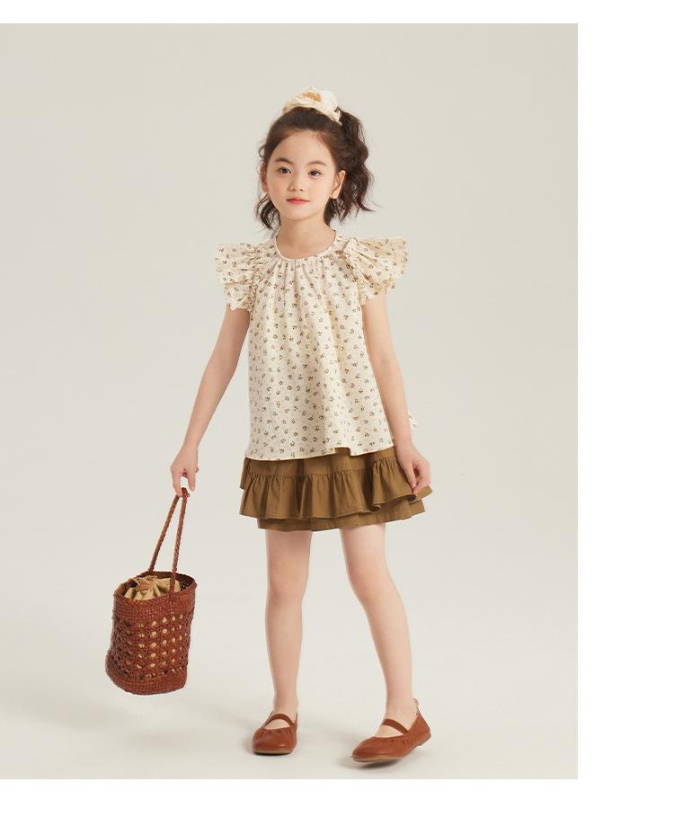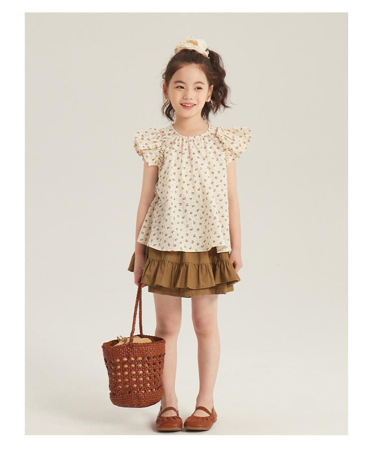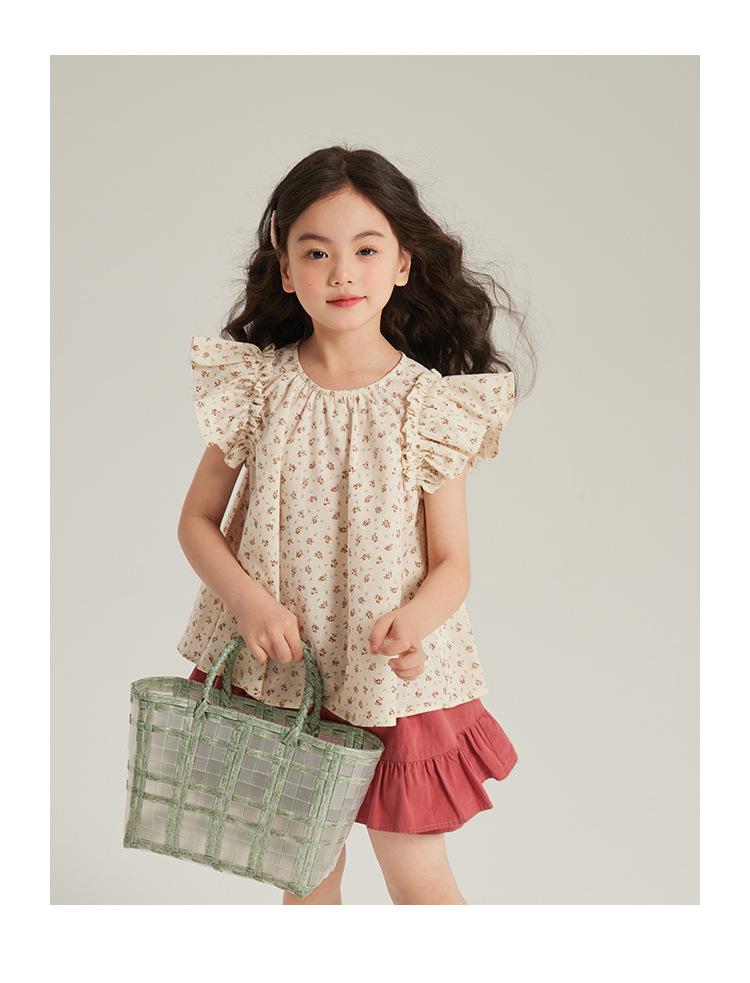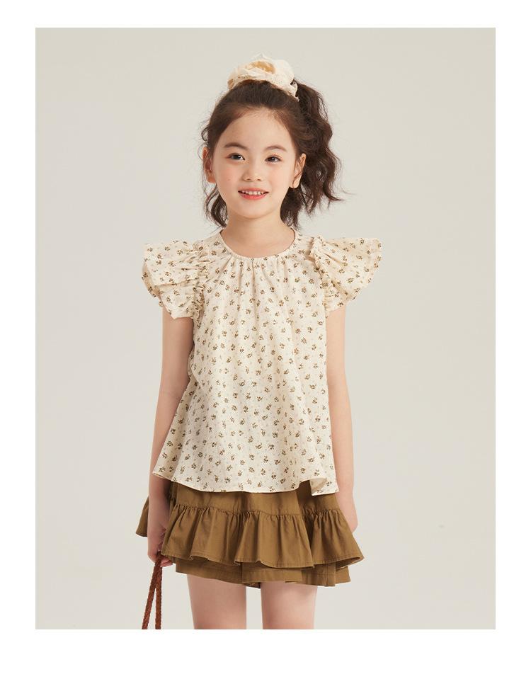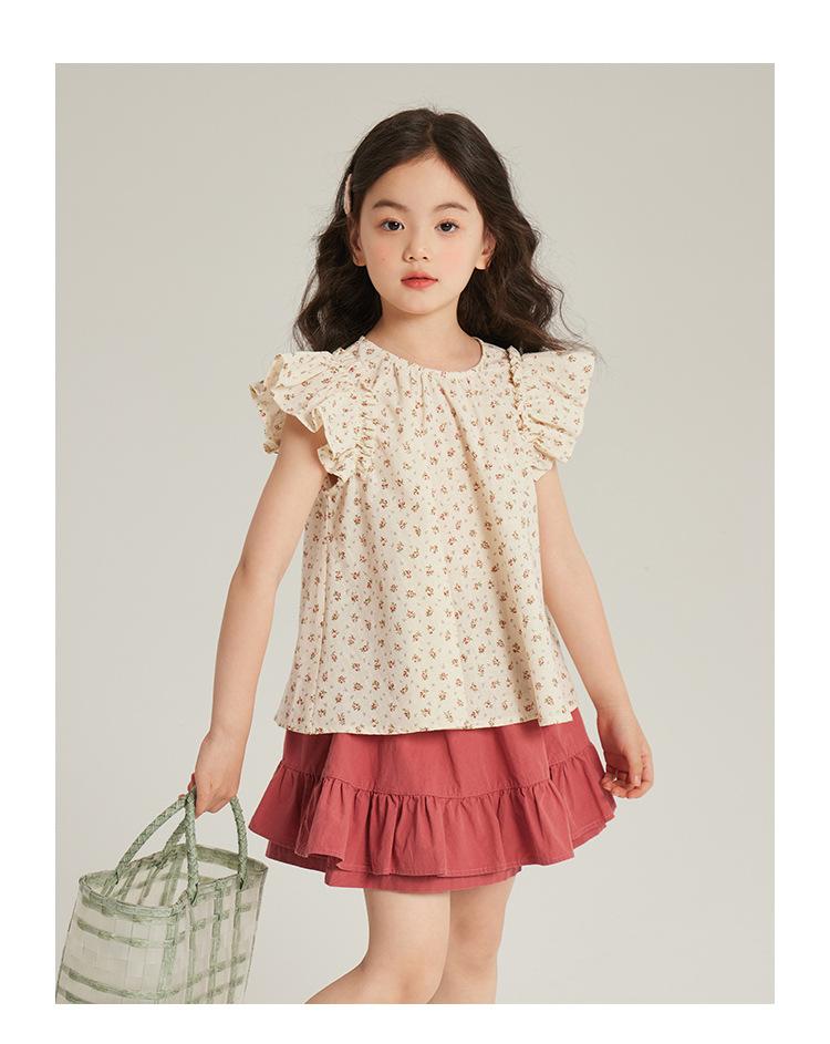 Camisa floral de manga corta estilo coreano para niñas, verano 2024, nueva camisa infantil de algodón puro agradable para la piel, estilo pastoral, manga corta
