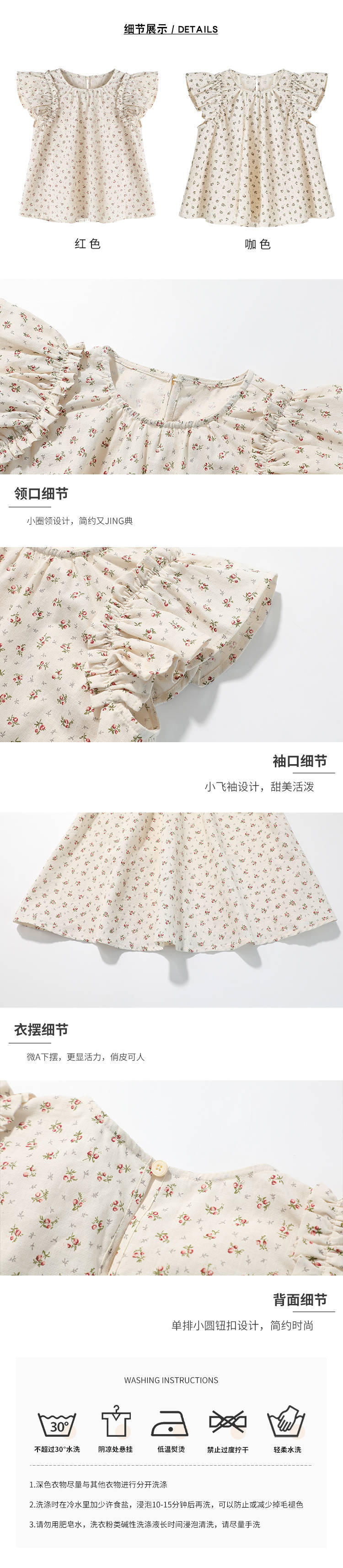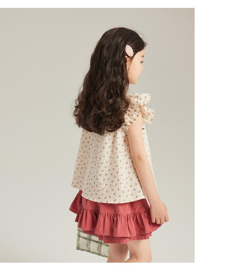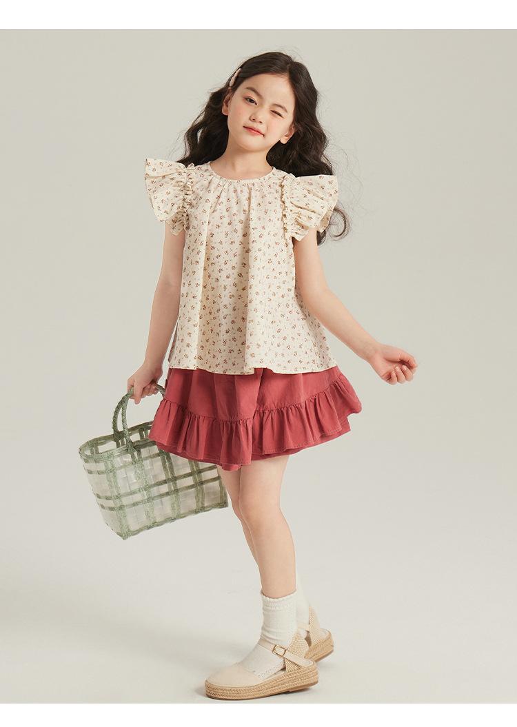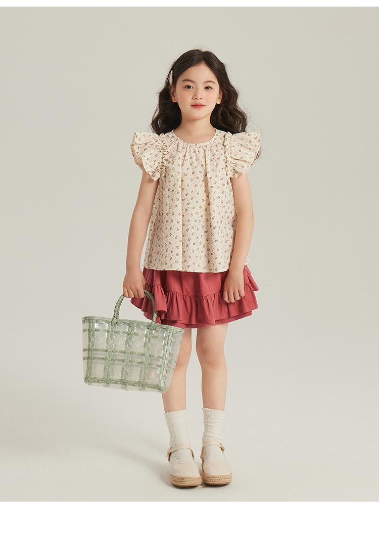 Camisa floral de manga corta estilo coreano para niñas, verano 2024, nueva camisa infantil de algodón puro agradable para la piel, estilo pastoral, manga corta