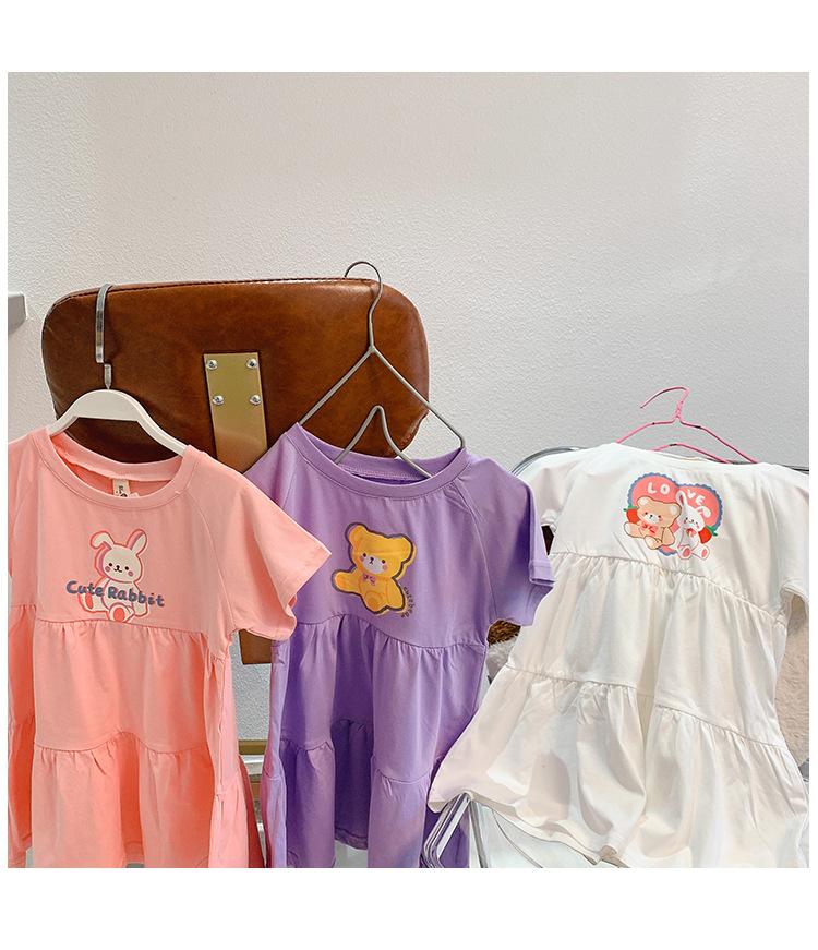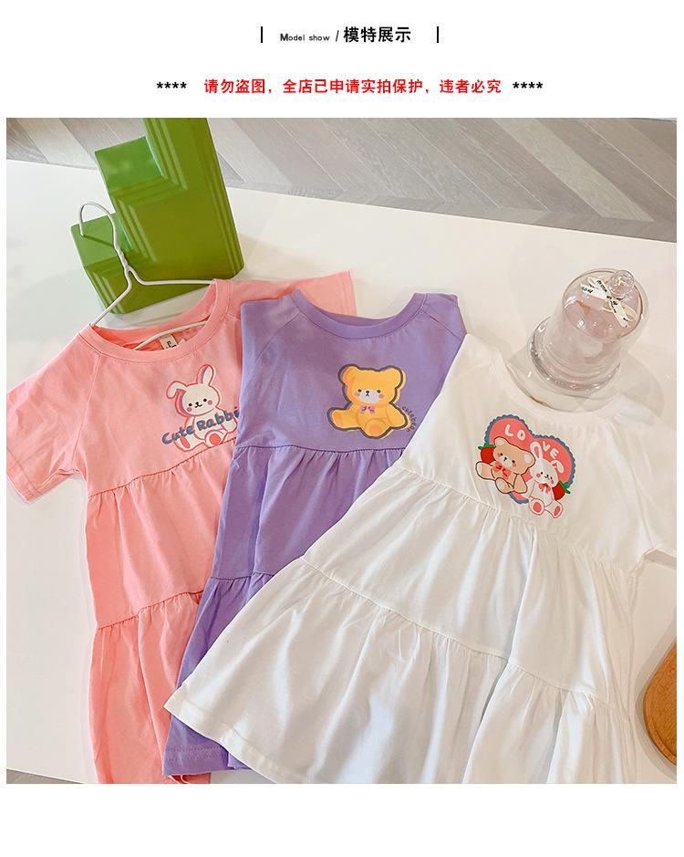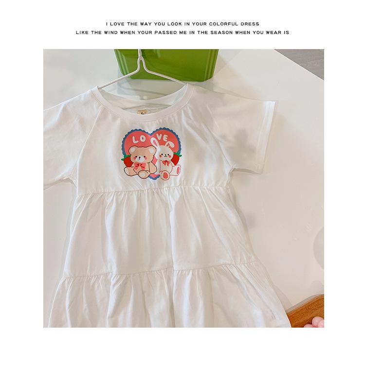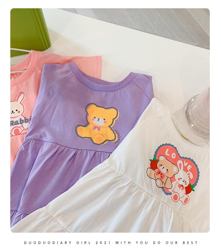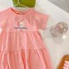 Vestido de verano de manga corta para niñas, 2021, nuevo vestido de princesa con costuras de dibujos animados para bebés, elegante vestido de algodón.