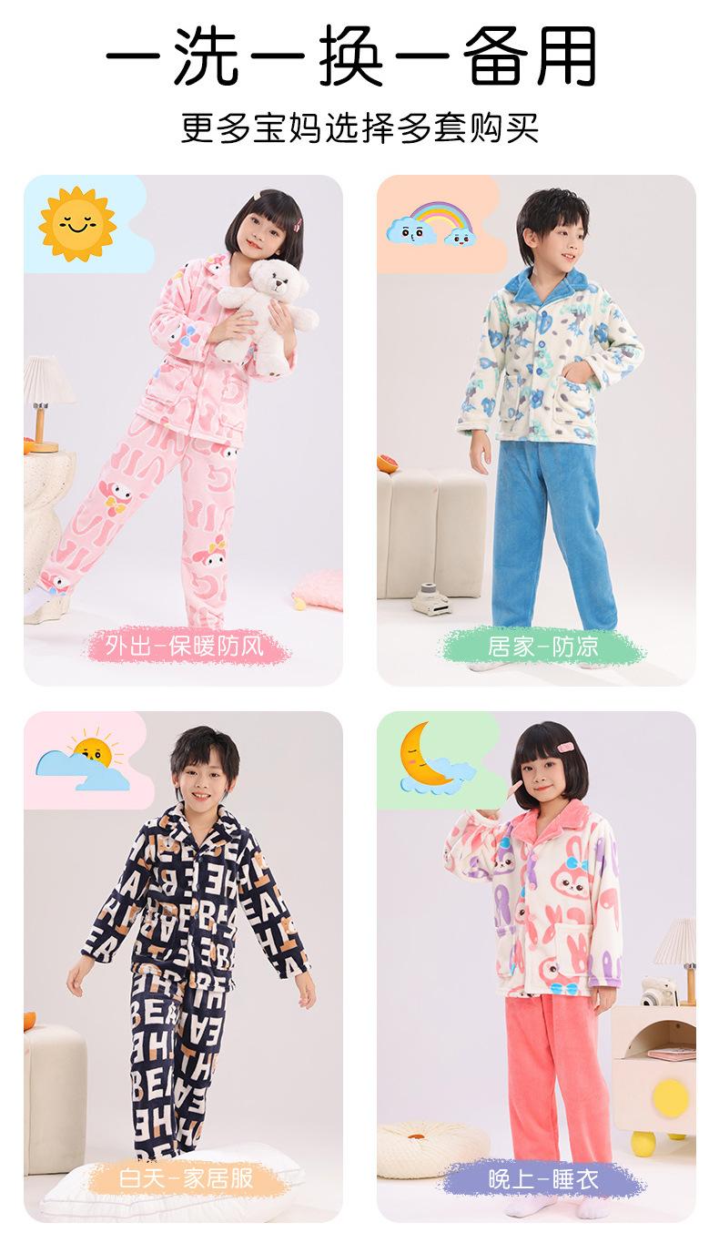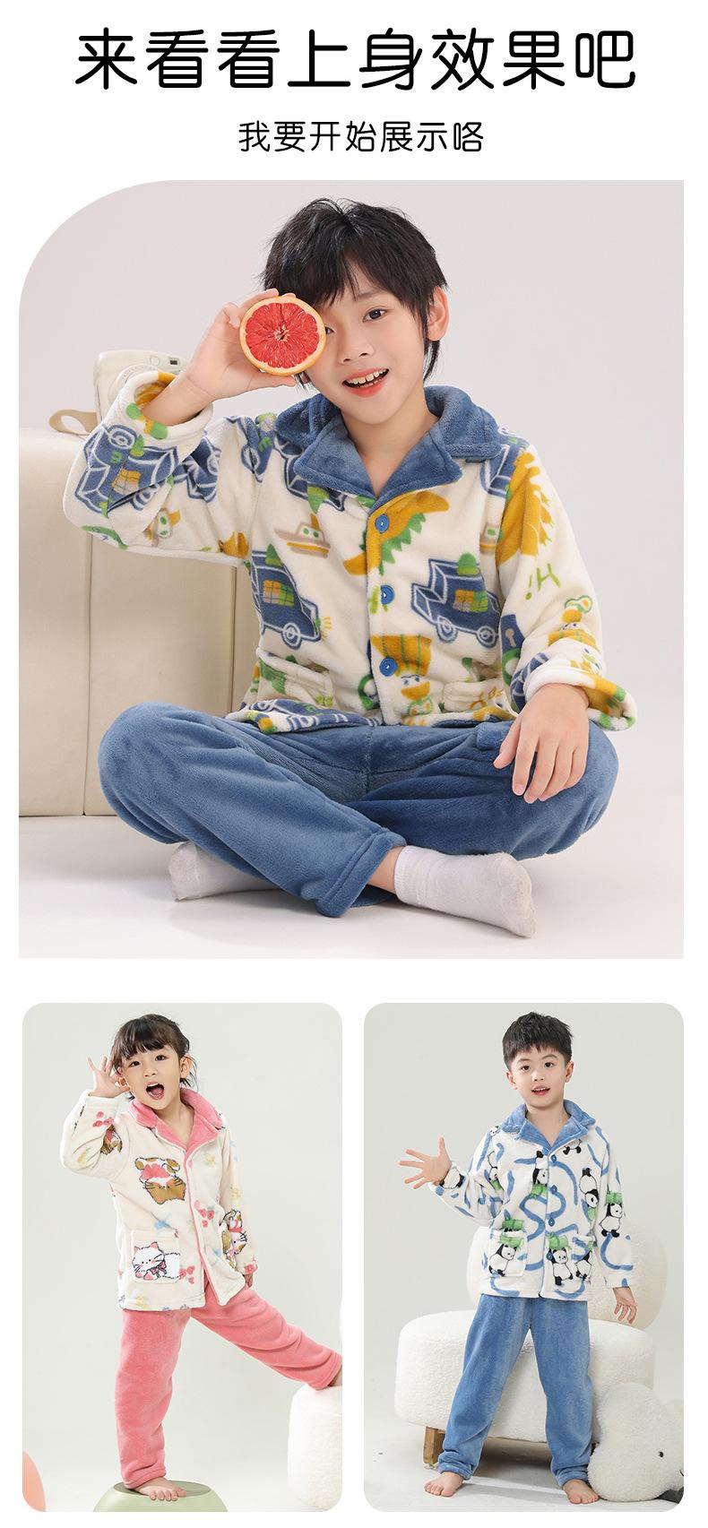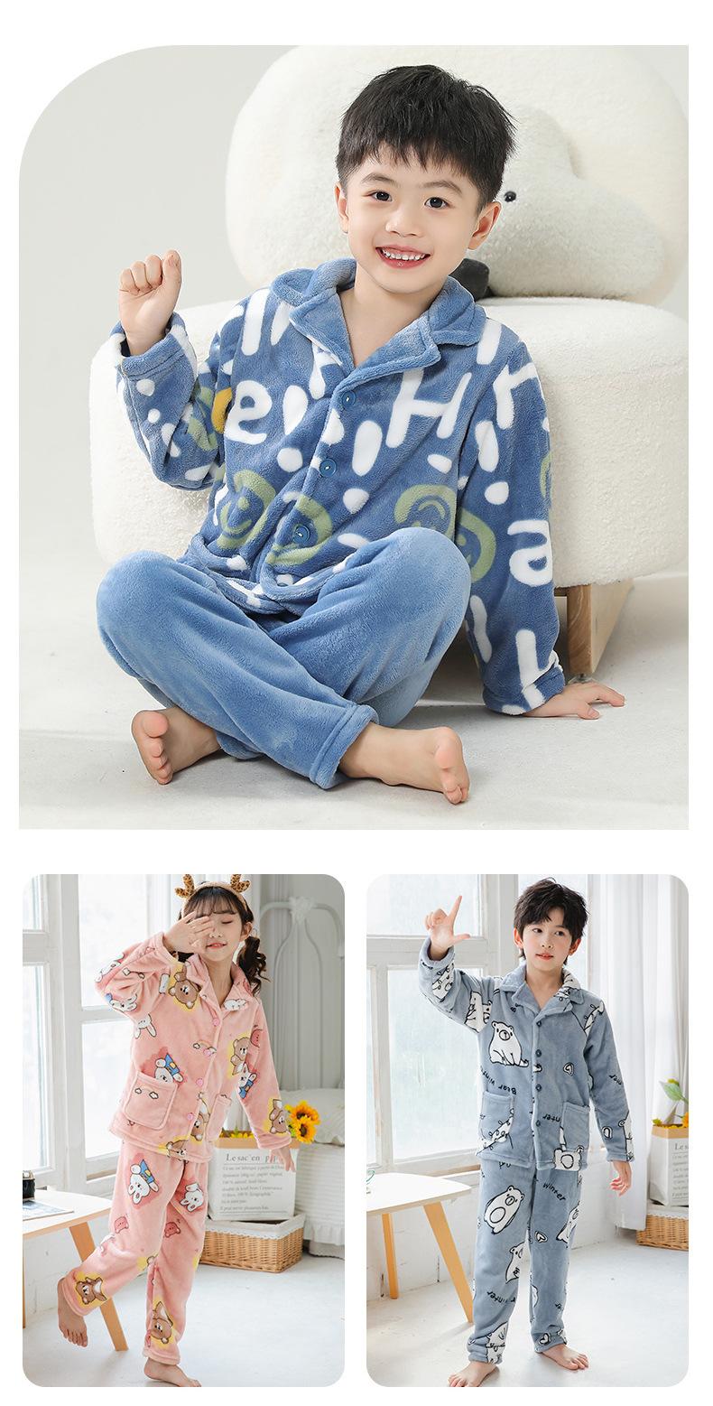 Pijamas infantiles de franela para el hogar, ropa de otoño e invierno, para niños y niñas, de forro polar coral, para bebés, niños medianos y grandes, traje grueso