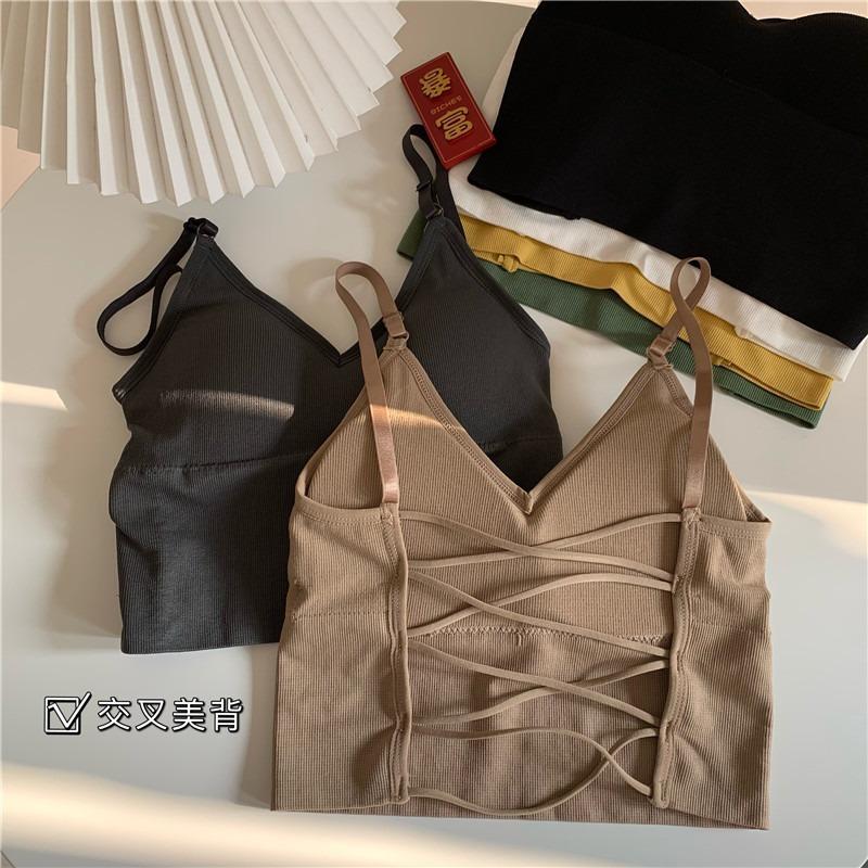 Camisola de tubo con espalda cruzada sin costuras para mujer, ligera, antideslizamiento, para uso interior y exterior, de longitud media