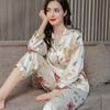 Pijama de seda pesada de 19 mm con bordado de mariposas, de seda morera, cómodo traje de manga larga para hombre, ropa de casa, pijama de seda