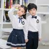 Ropa de jardín de infantes Primavera y otoño Nuevo uniforme escolar para niños de estilo británico, traje de camisa de manga larga, ropa de clase para estudiantes de primaria y secundaria