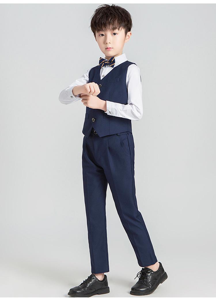 Navy blue vest 4-piece set (short-sleeved shirt)