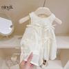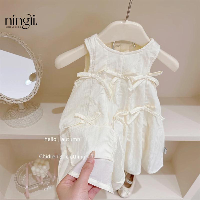 Vestido de Lazo Lima para Niña 25 Verano Nuevo Estilo Coreano Vestido Blanco de Linterna para Niños Vestido Chaleco Estilo Ballet