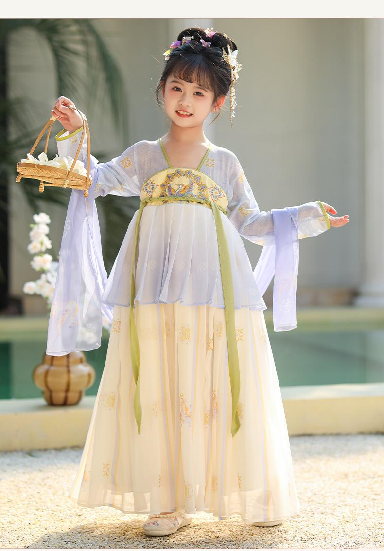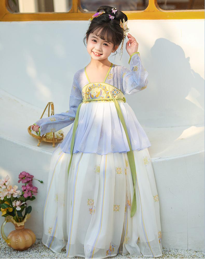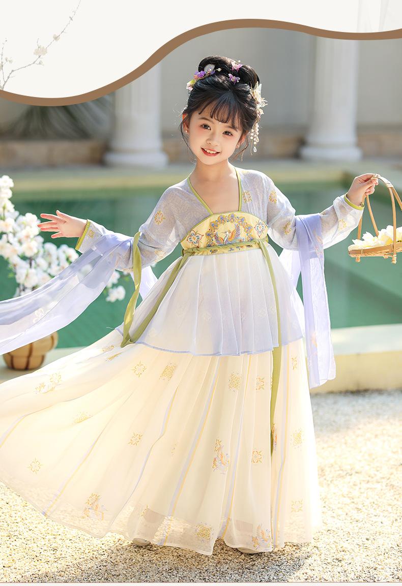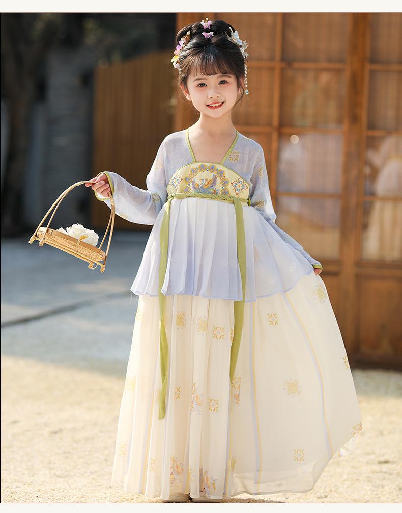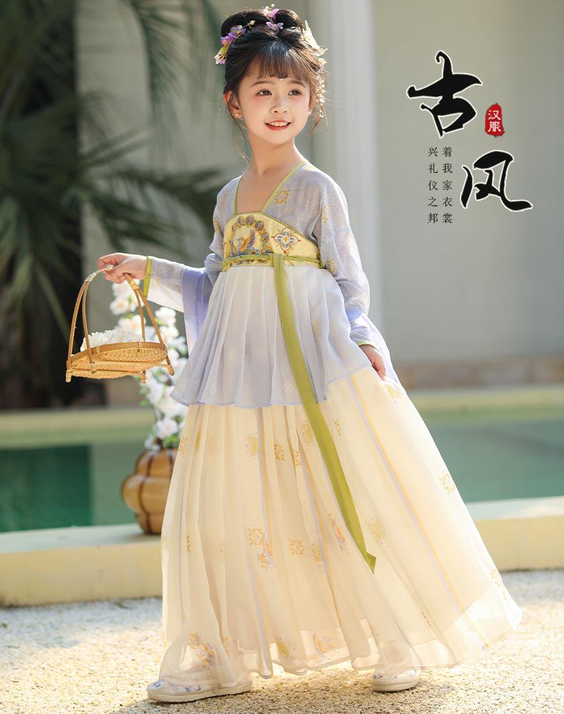 Falda de primavera para niñas Hanfu 2025, nuevo vestido de hada súper de estilo chino antiguo, traje Tang de estilo antiguo para niños, verano