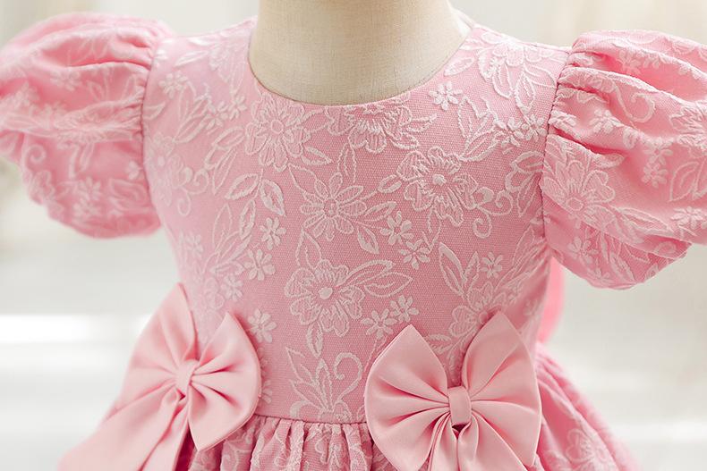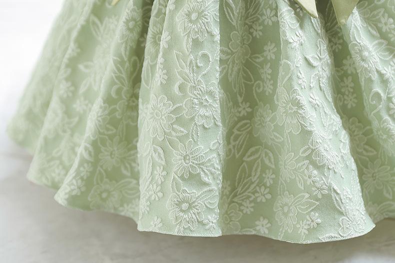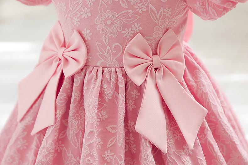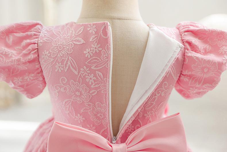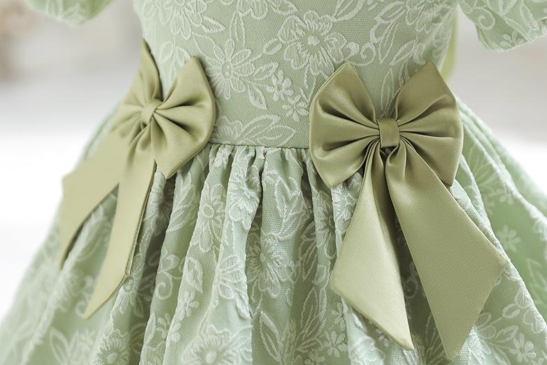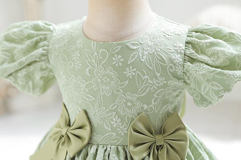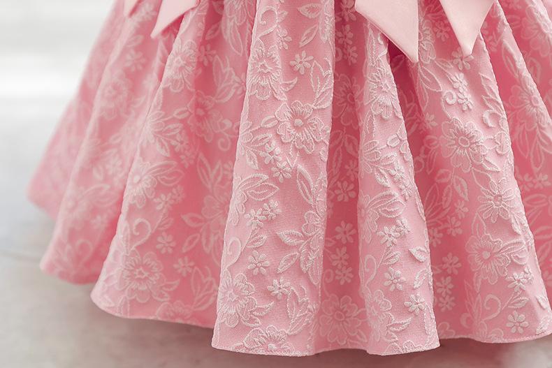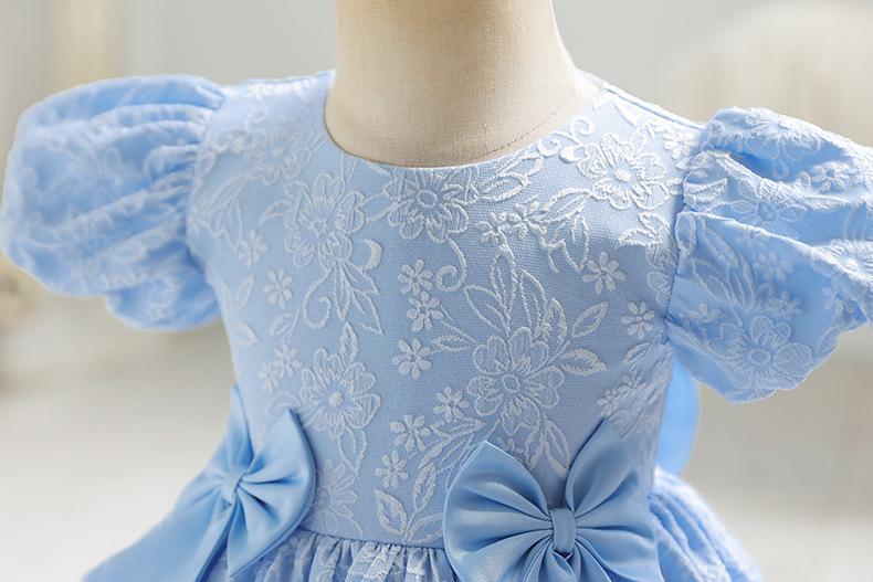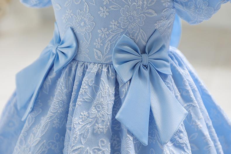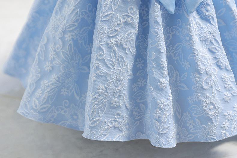 Vestido de niña, vestido de princesa infantil, vestido de niña de flores esponjoso, bordado, lazo con borde cruzado, actuación de niña pequeña