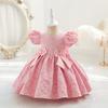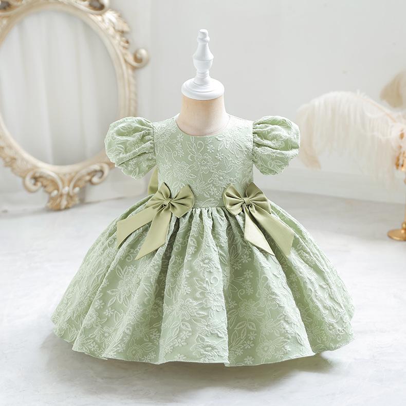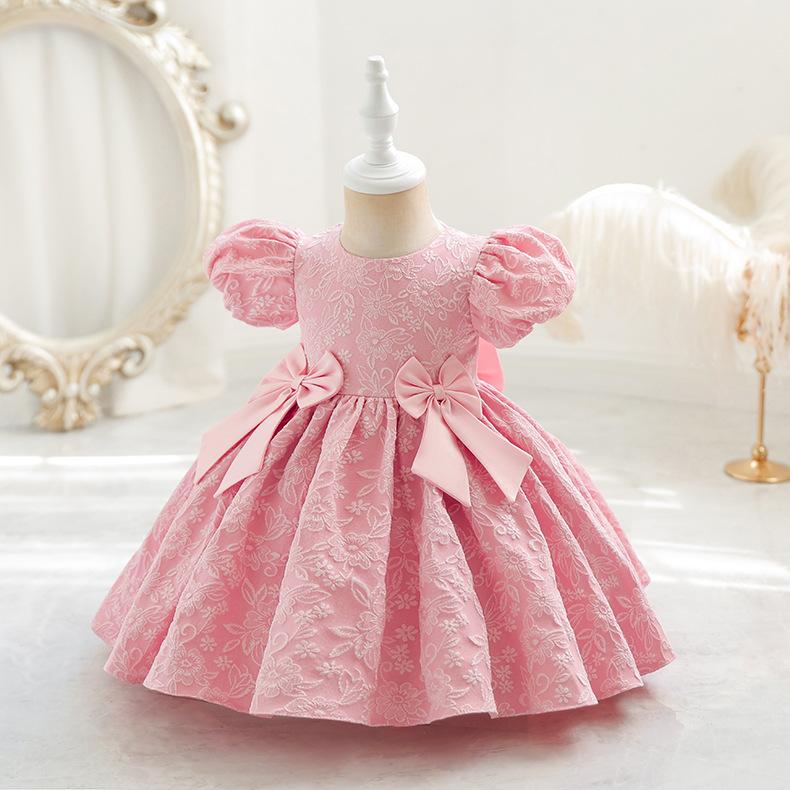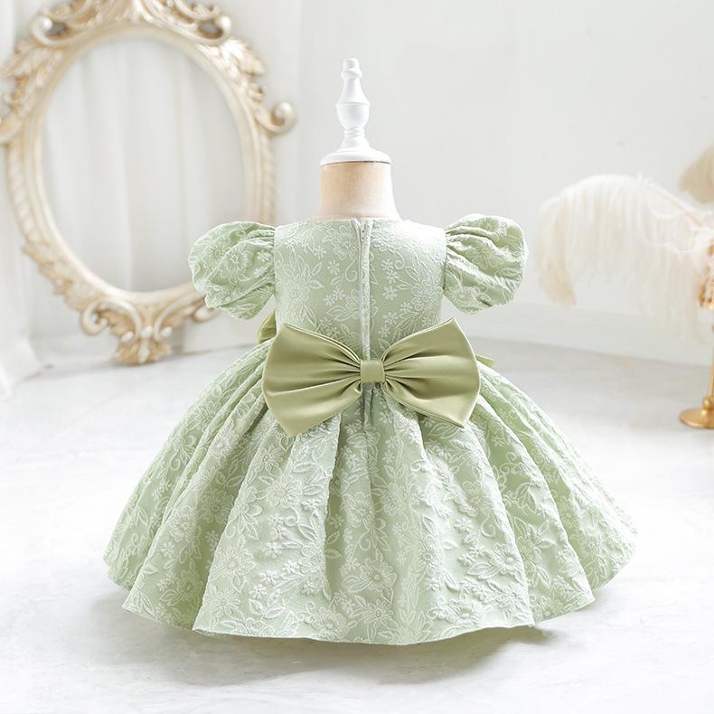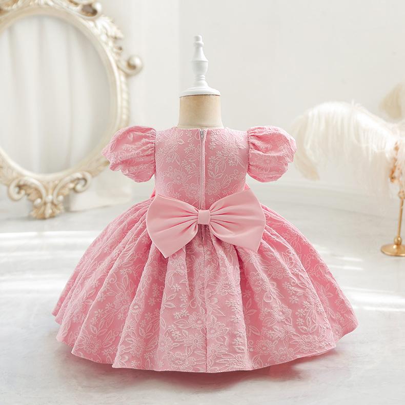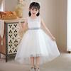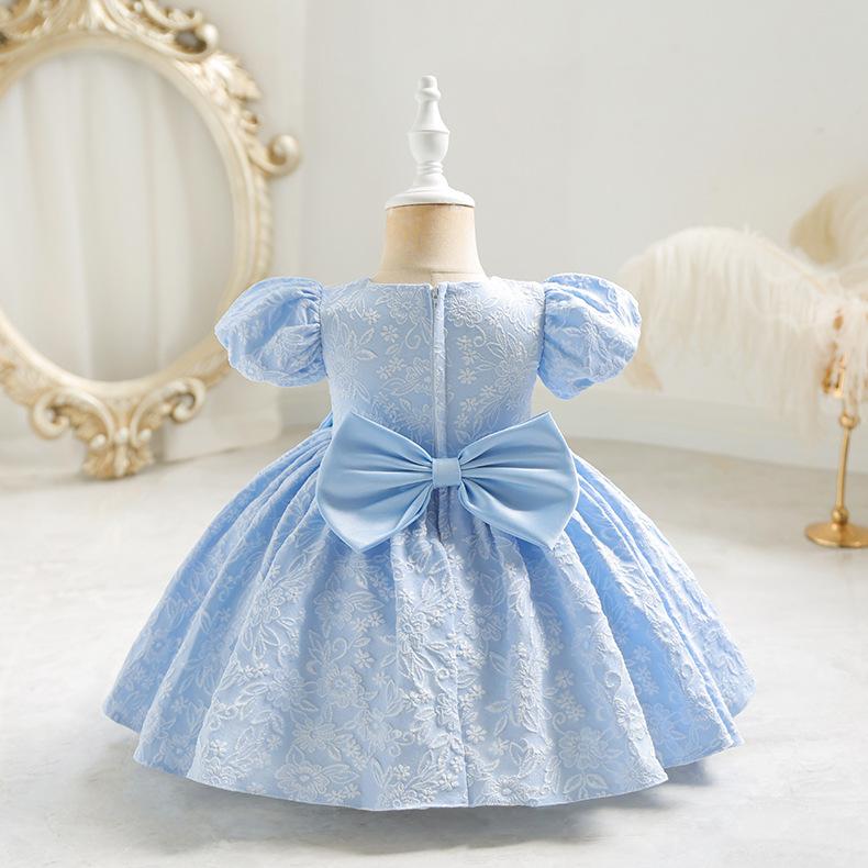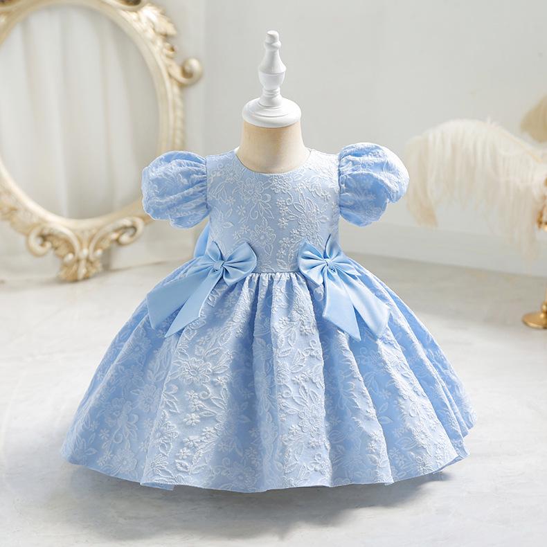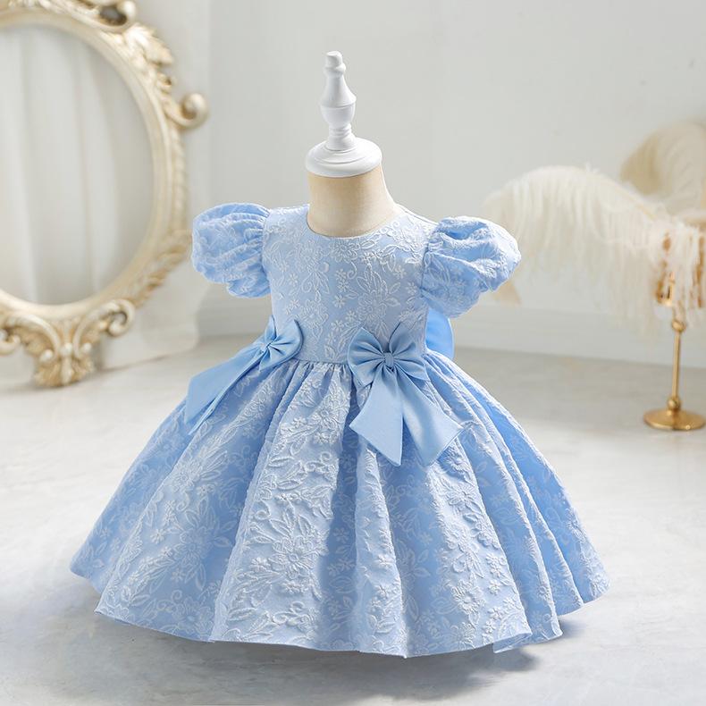 Vestido de niña, vestido de princesa infantil, vestido de niña de flores esponjoso, bordado, lazo con borde cruzado, actuación de niña pequeña