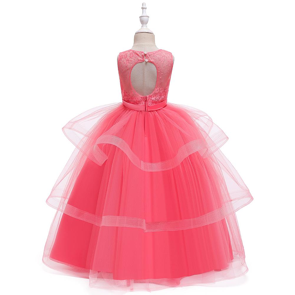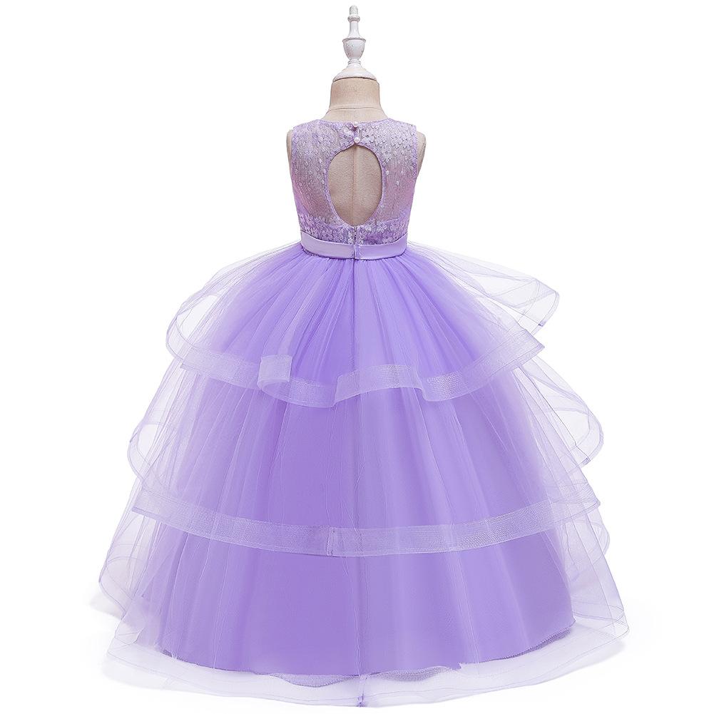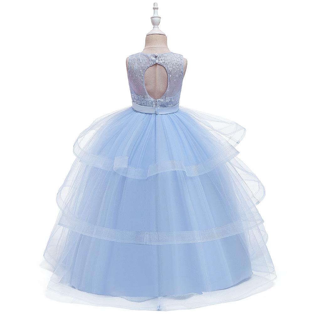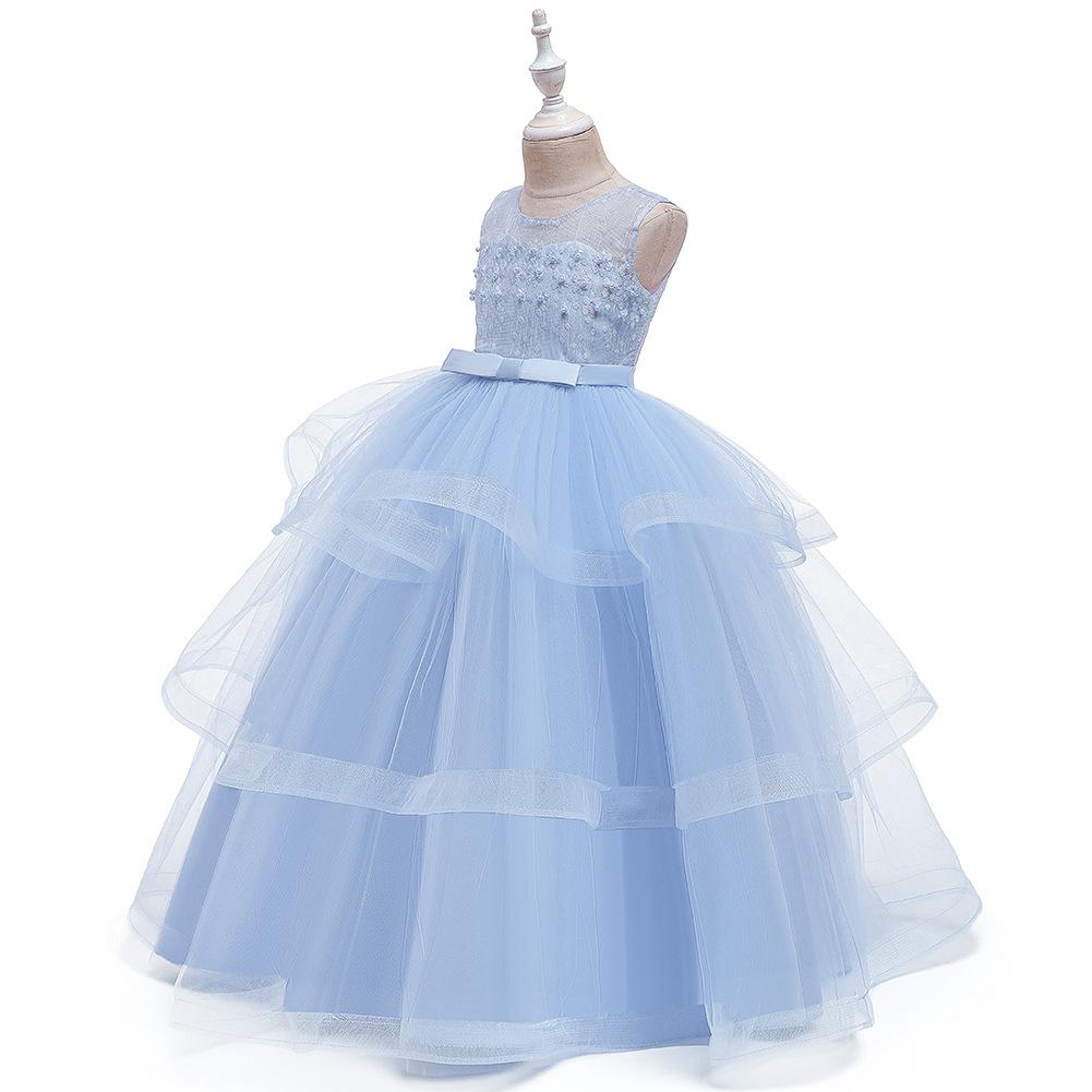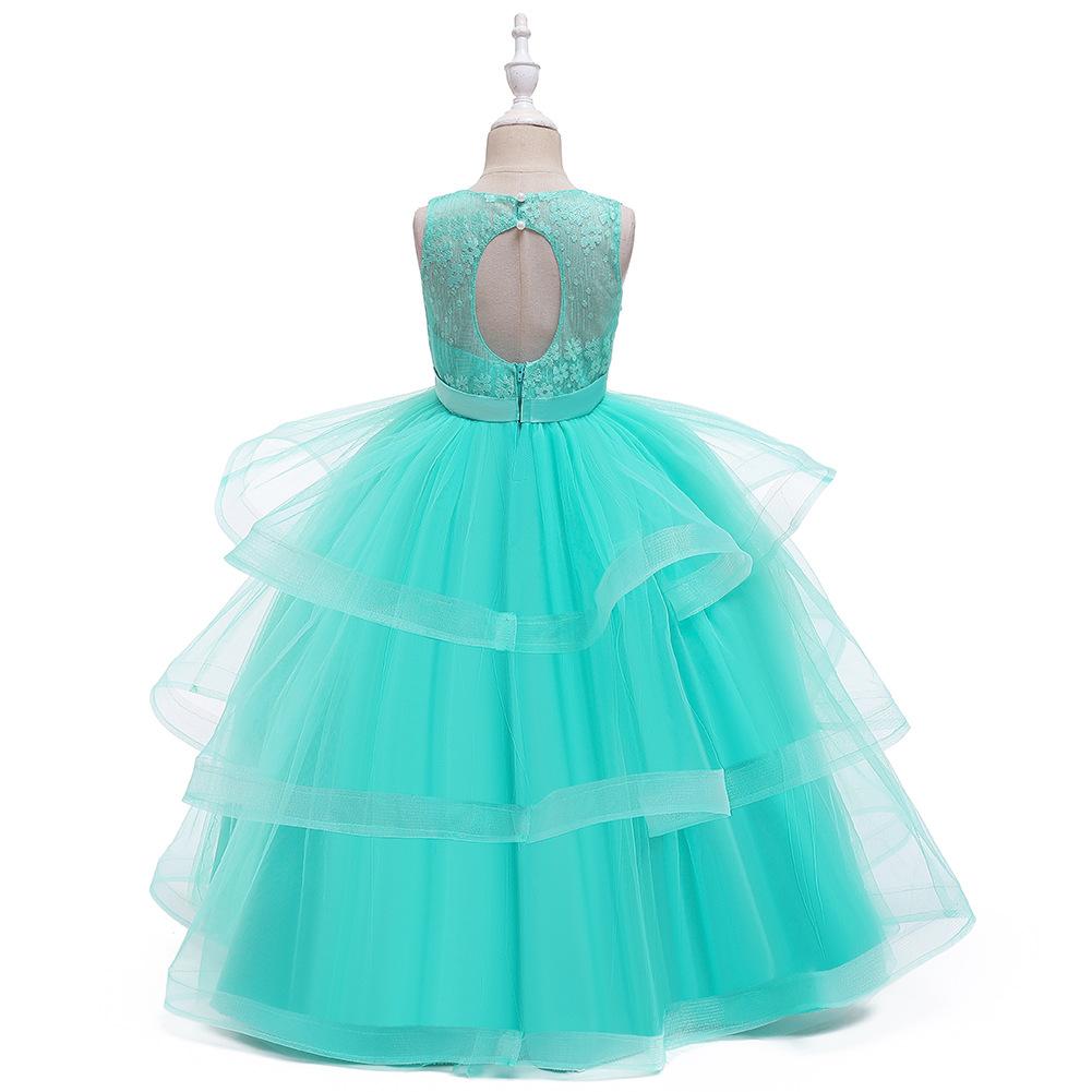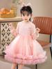Vestido de novia largo para niñas, falda de princesa de malla esponjosa, ropa infantil europea y americana de talla mediana y grande, ropa de rendimiento estampada para niñasOrdene ahora