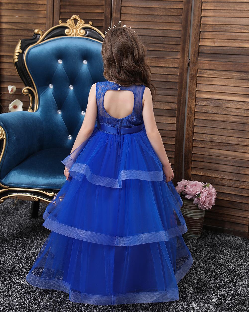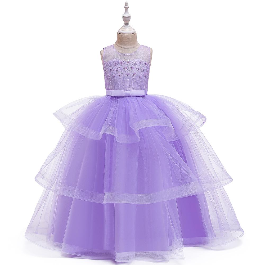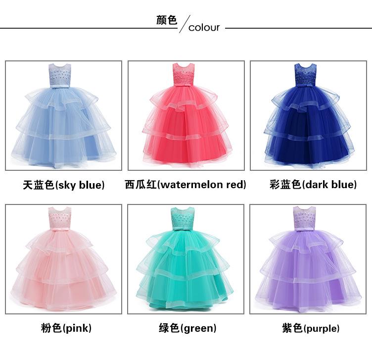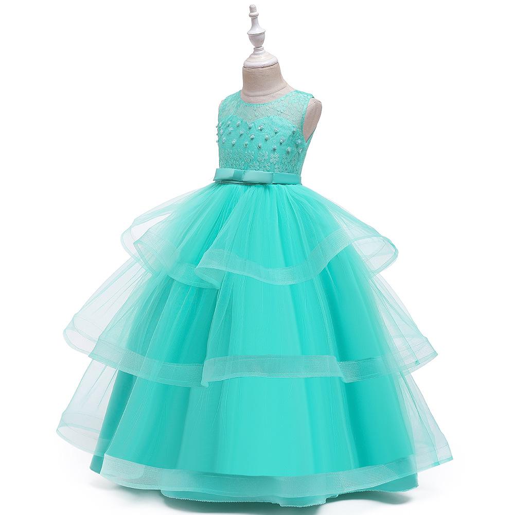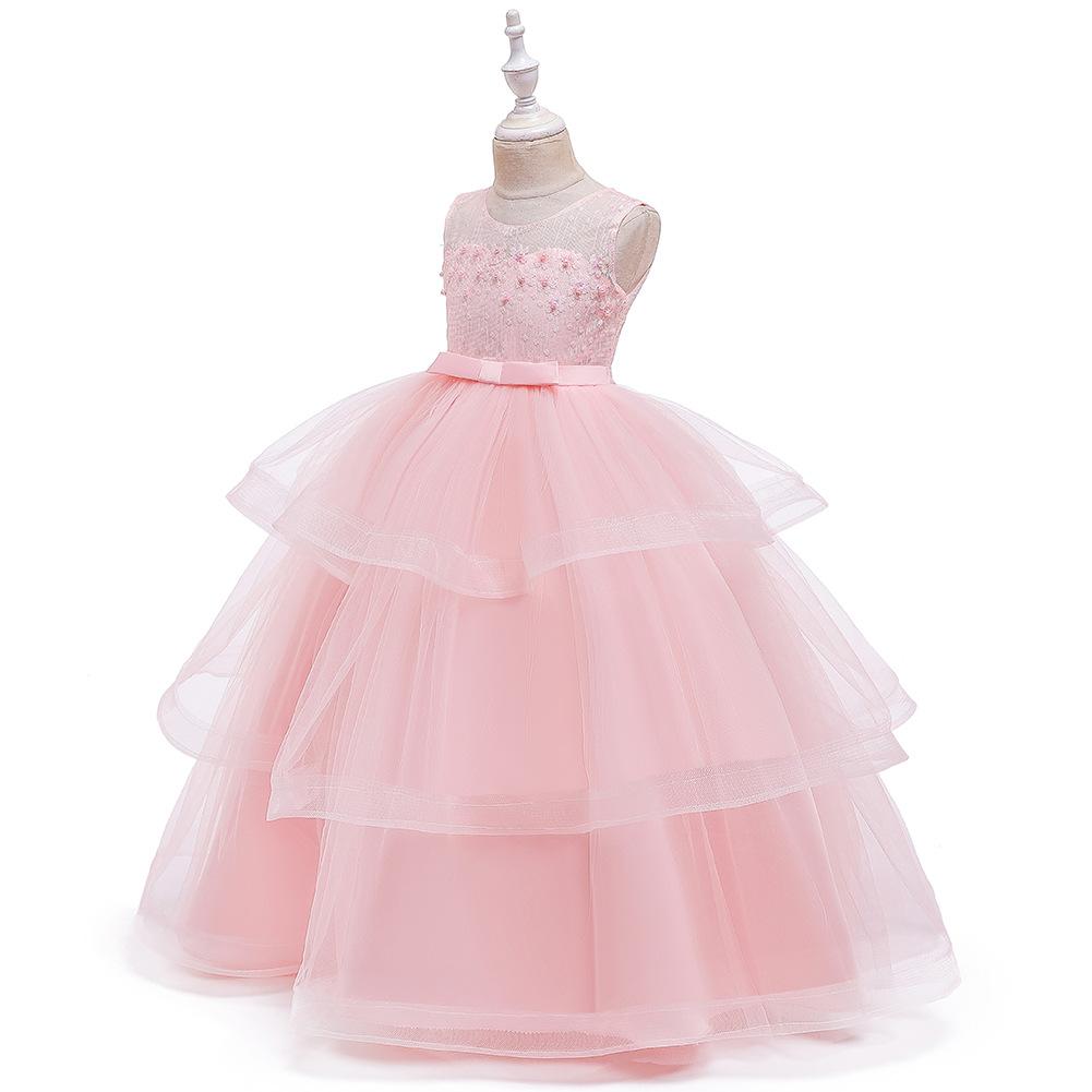 Vestido de novia largo para niñas, falda de princesa de malla esponjosa, ropa infantil europea y americana de talla mediana y grande, ropa de rendimiento estampada para niñasOrdene ahora