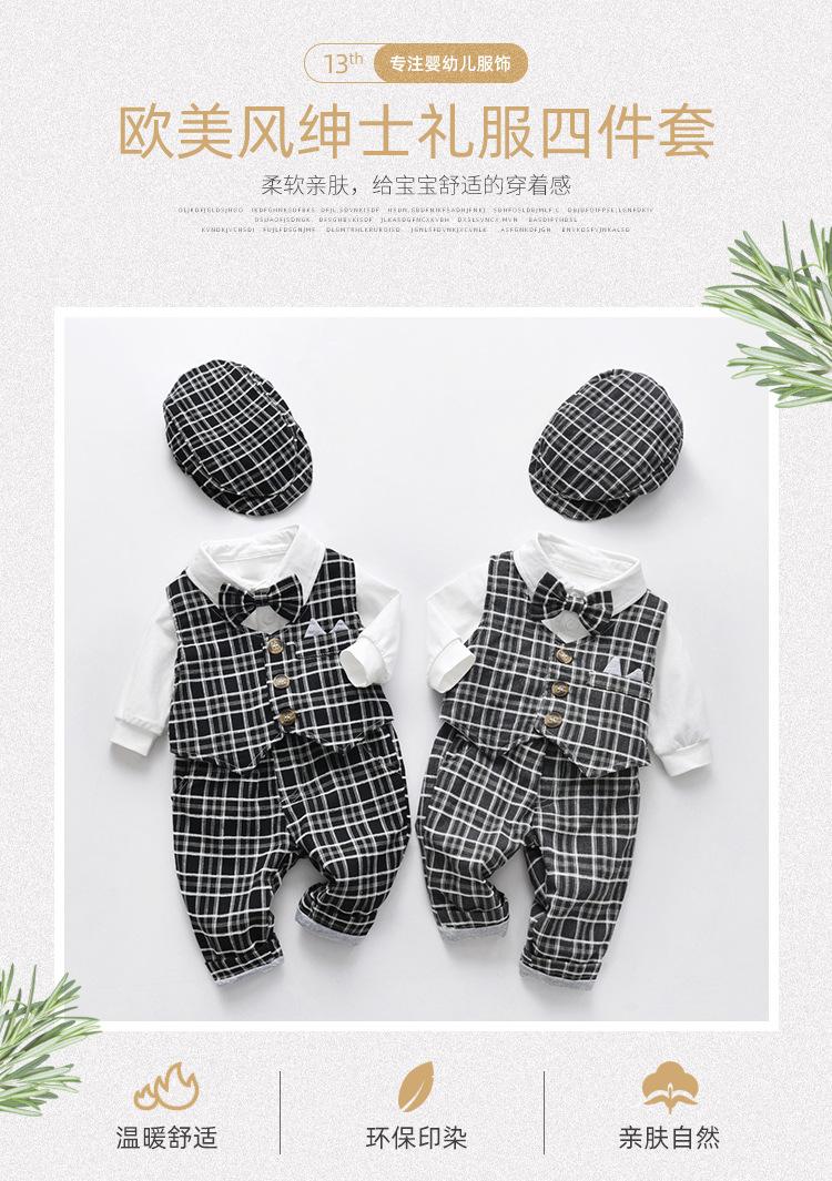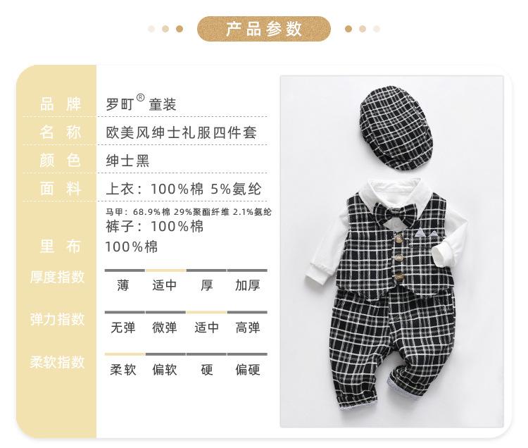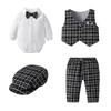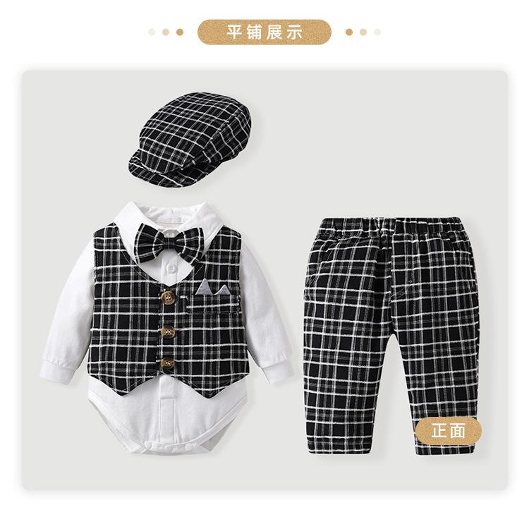 Conjunto Formal para Bebé, Mameluco de Manga Larga para Bebé de Algodón Puro con Pajarita de Caballero, Conjunto de Cuatro Piezas para Niño de Un Año, Estilo Británico