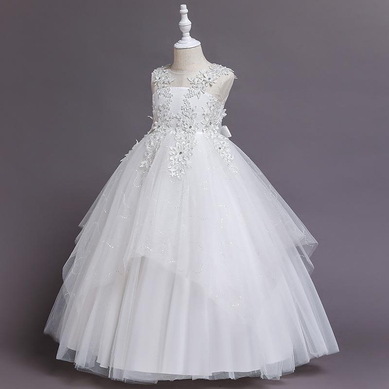 Vestido de niña para niña Princesa Dama de honor Cumpleaños Baile Festival Disfraz de actuación Amazon Verano Nuevo Esponjoso Vestido de boda