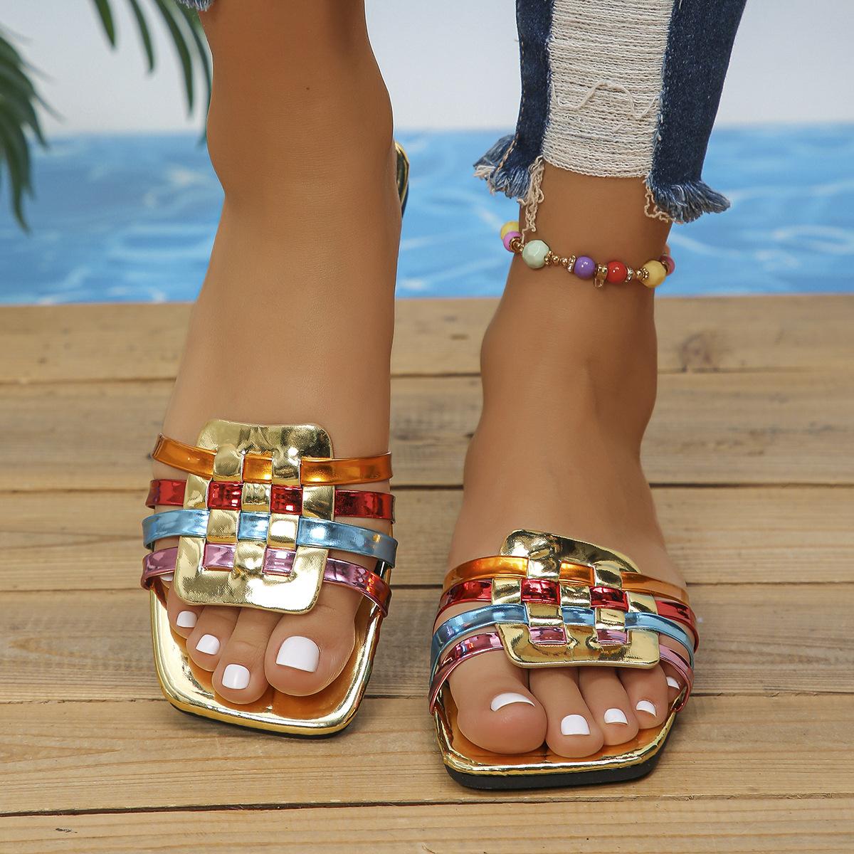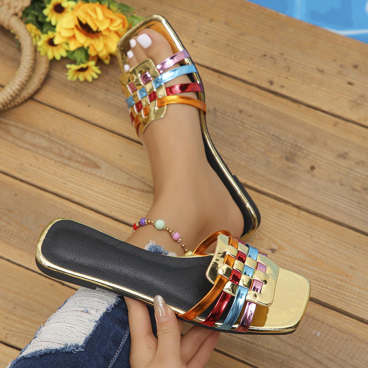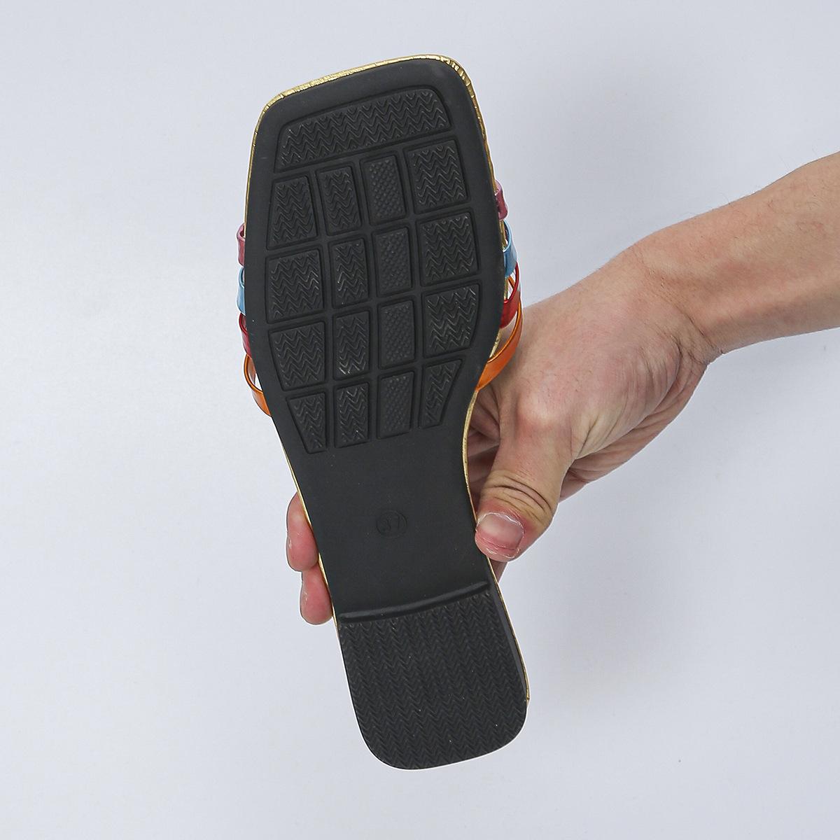 2025 Nuevo Tamaño Grande Comercio Exterior Colorido Tejido Casual Chanclas Planas para Mujer Punta Abierta Moda Más Fácil de Combinar Sandalias Planas