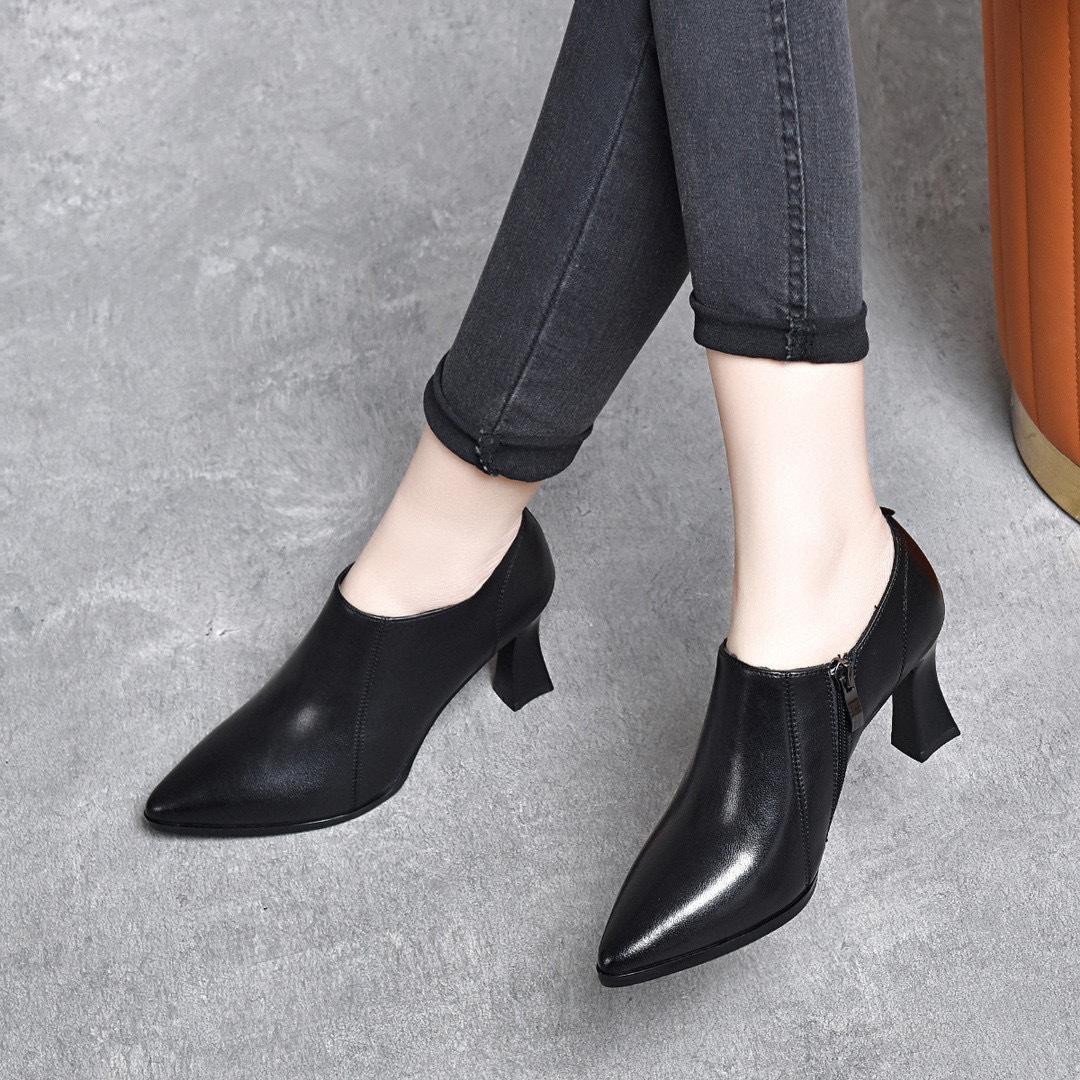Zapatos de tacón de aguja puntiagudos para mujer, tacones altos, primavera 2024, nuevos zapatos de mujer de estilo británico con boca profunda, zapatos de tobillo de temperamento simple, zapatos de trabajo