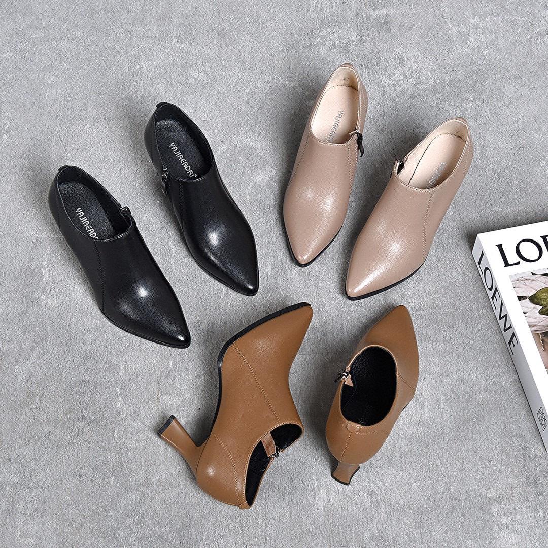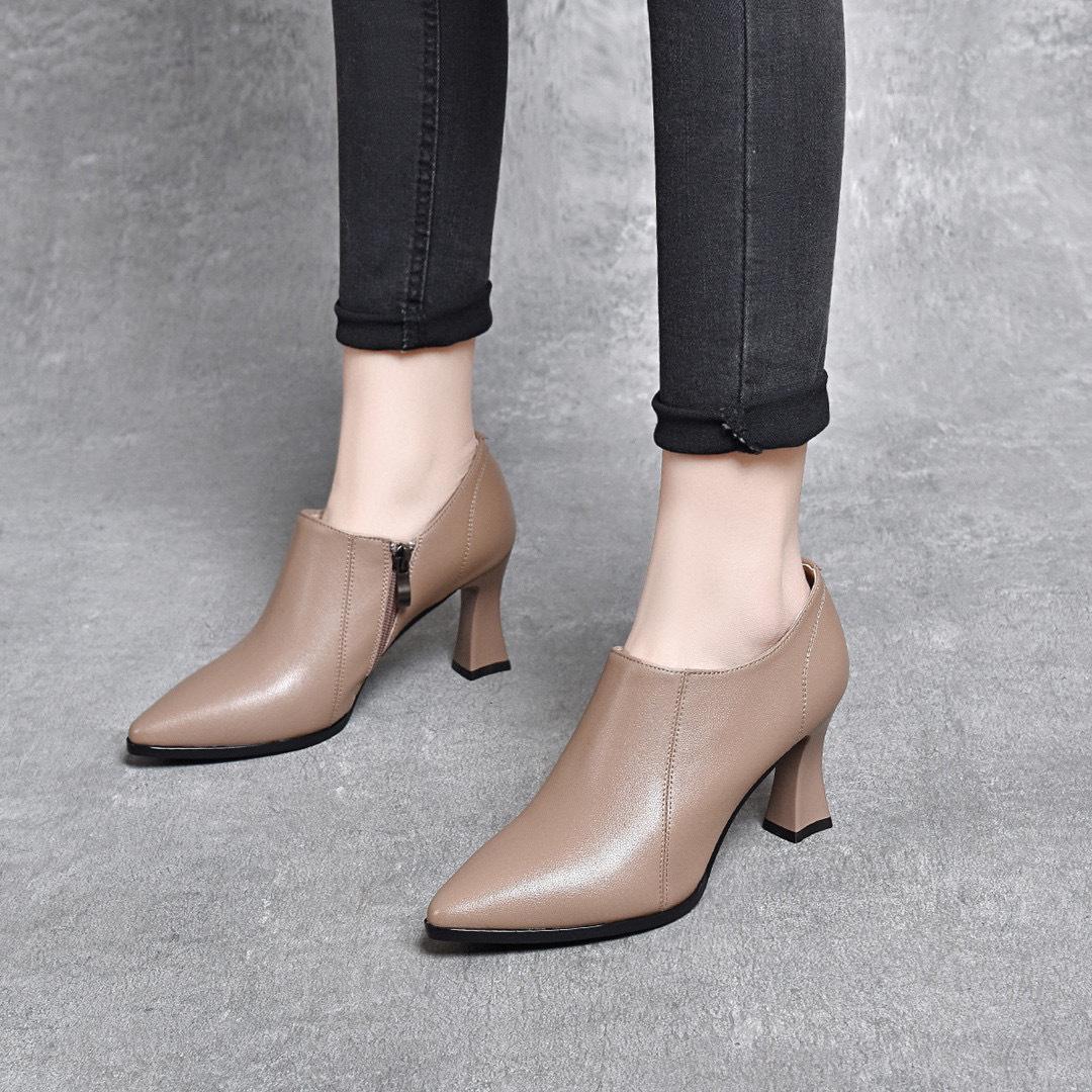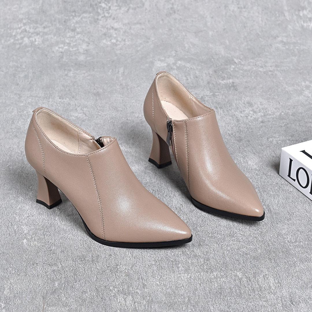 Nuevos modelos lanzados Altura del tacón: 7cm Talla: 34-40 Color: Negro Albaricoque Marrón Material: Piel de vaca (dos capas)