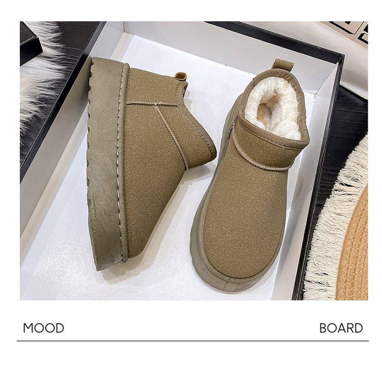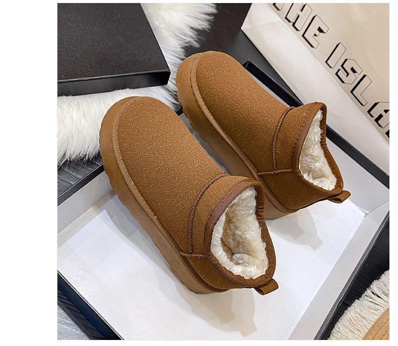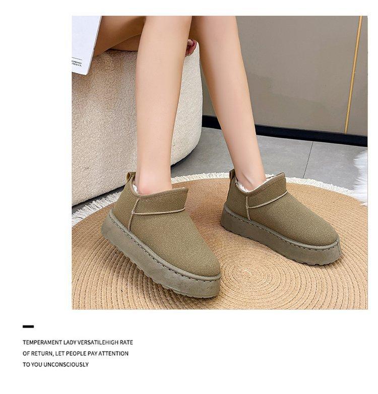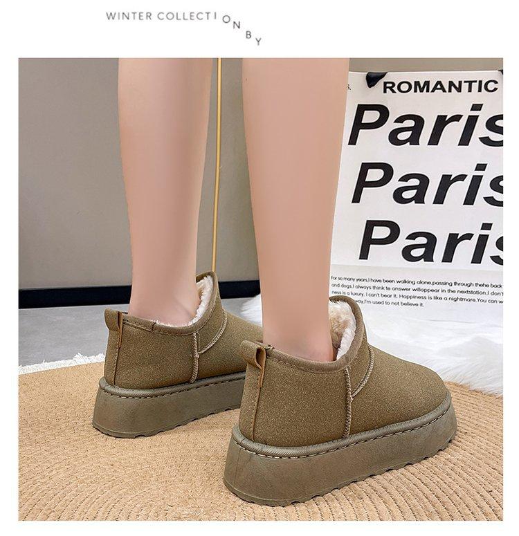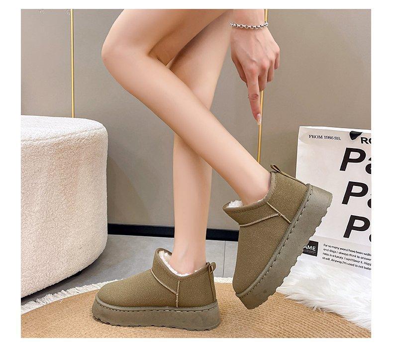 Botas de nieve de suela gruesa y corta de talla grande para comercio exterior europeo y americano, botas de nieve de algodón gruesas y cálidas con forro polar para mujer