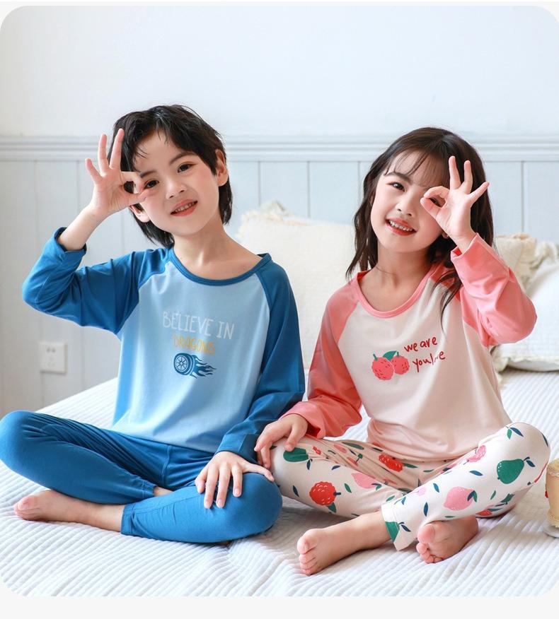 Conjunto de Ropa de Otoño para Niños, Ropa Interior Térmica Clase A de Algodón Mo para Niñas, Ropa de Descanso de Manga Larga, Pijamas para Niños de Otoño e Invierno