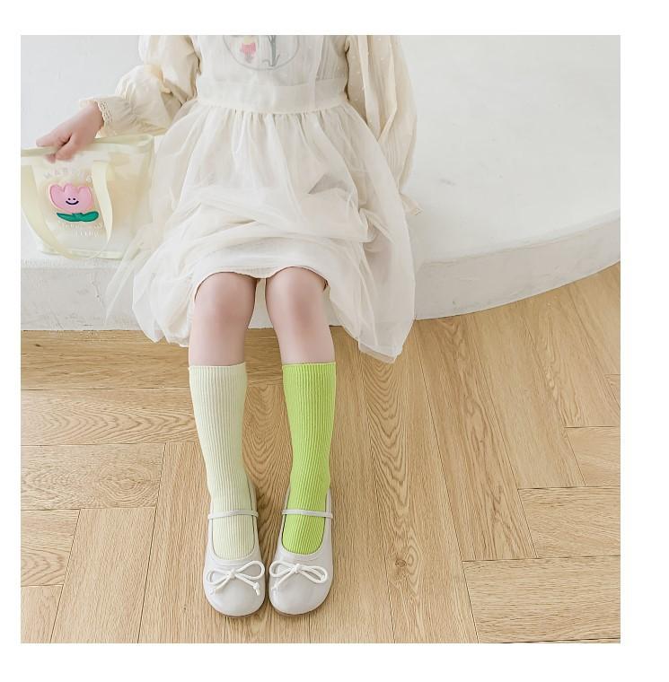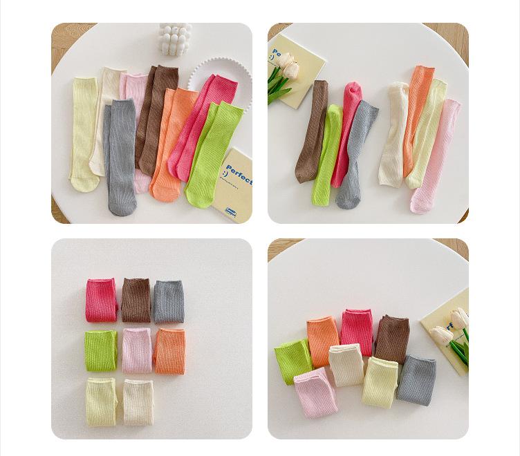 Calcetines para niños y niñas, hasta la pantorrilla, transpirables, de primavera y verano, para el campus, de color caramelo coreano, antideslizantes y apilables.