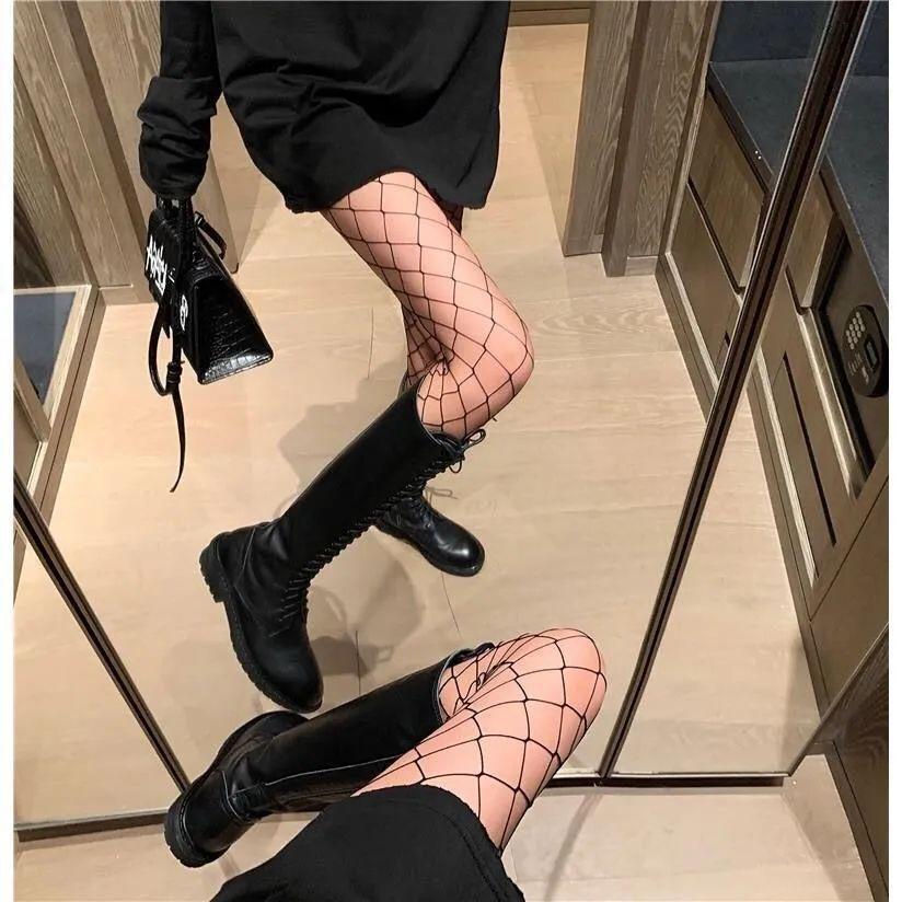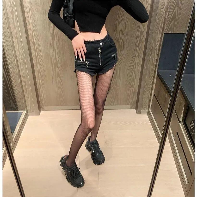 Medias de Red de Pesca de Seda Negra Mu Ruan Medias de Seda Medias de Red Delgadas Sexy para Mujer Encaje Negro Cuadrícula JK Verano Chica Caliente Red de Pesca