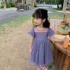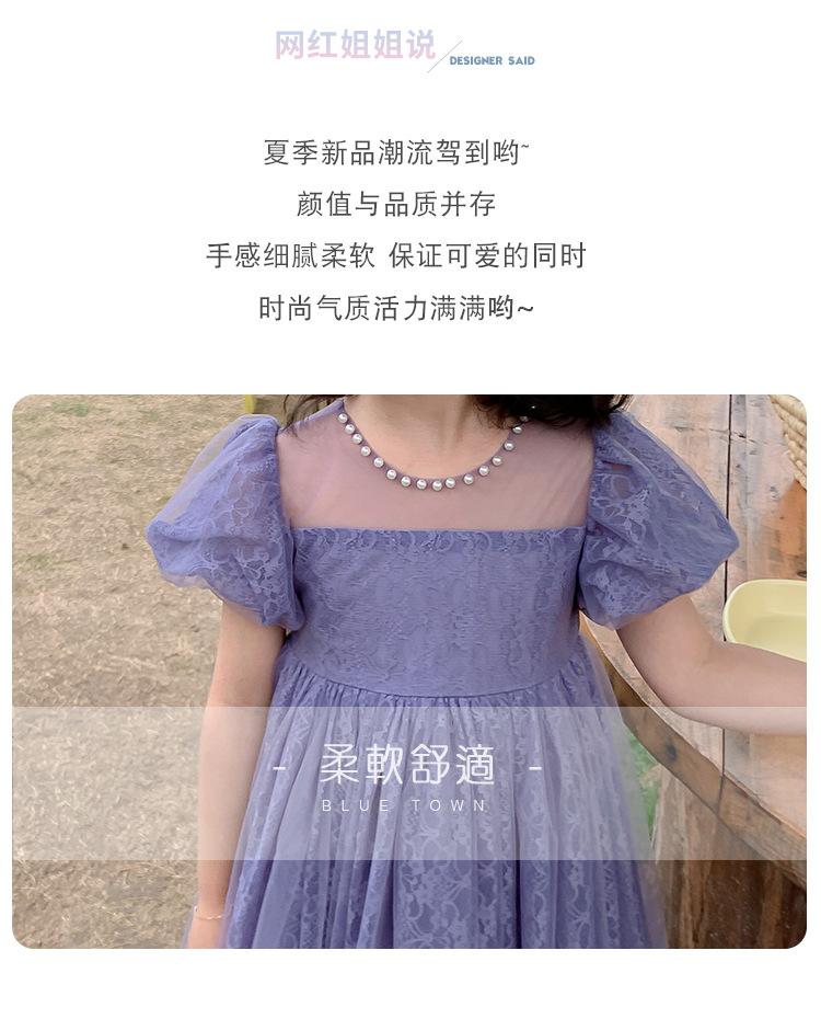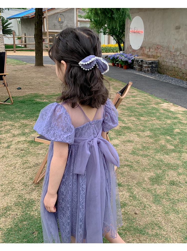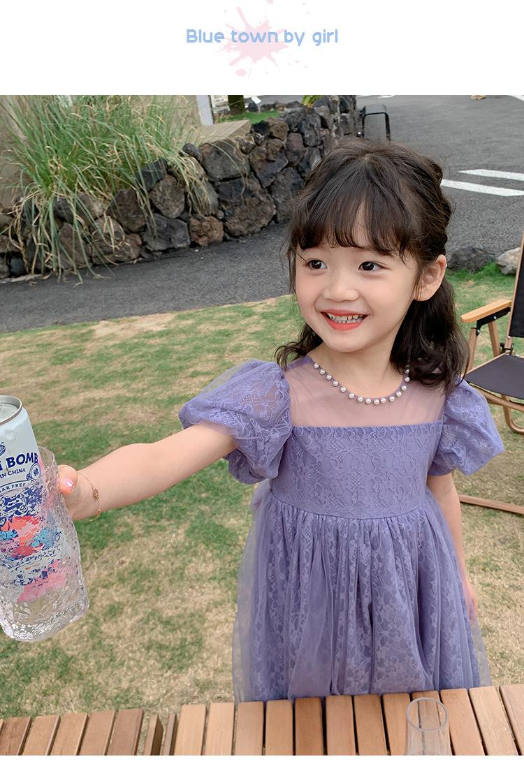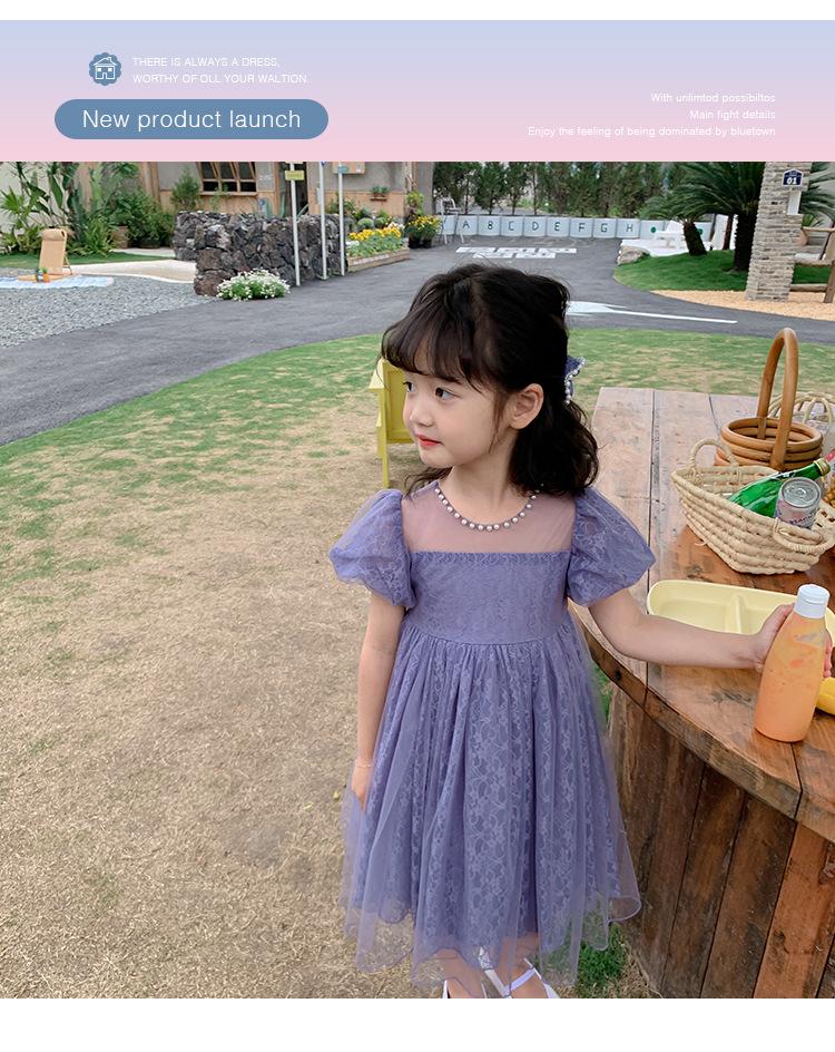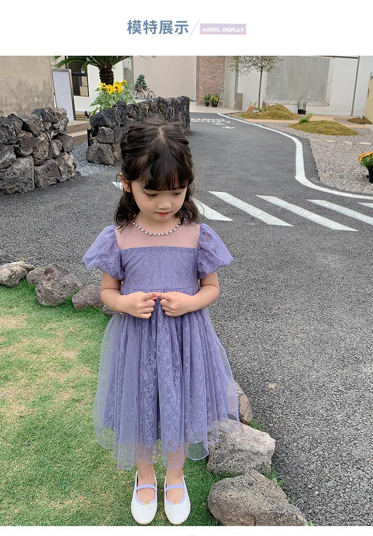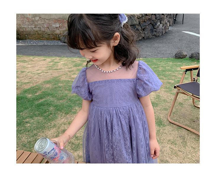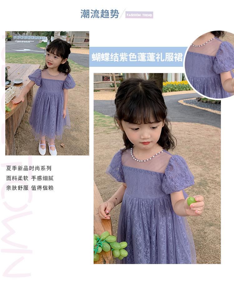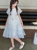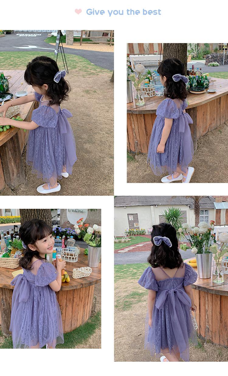 Vestido de Manga Corta para Niñas 2024 Verano Nuevo Estilo Vestido de Princesa de Malla para Niños Vestido con Lazo para Niños de Talla Pequeña y Mediana Moderno