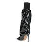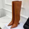 2023 comercio exterior nuevo estilo europeo y americano charol punta fina tacón delgado tacón súper alto pasarela tubo alto talla grande botas de mujer