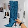 Botas altas hasta la rodilla de doble uso con remaches de metal puntiagudos de tacón alto y costura vaquera de comercio exterior, zapatos de mujer de talla grande, novedad de 2024