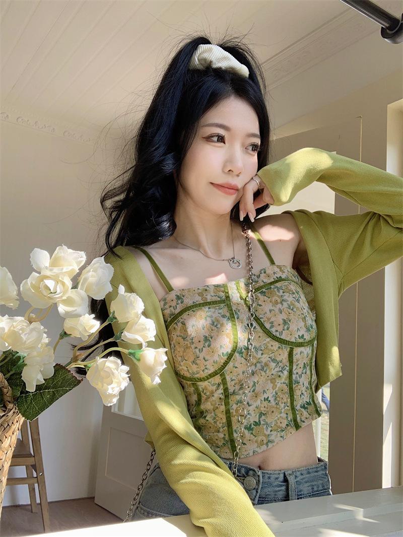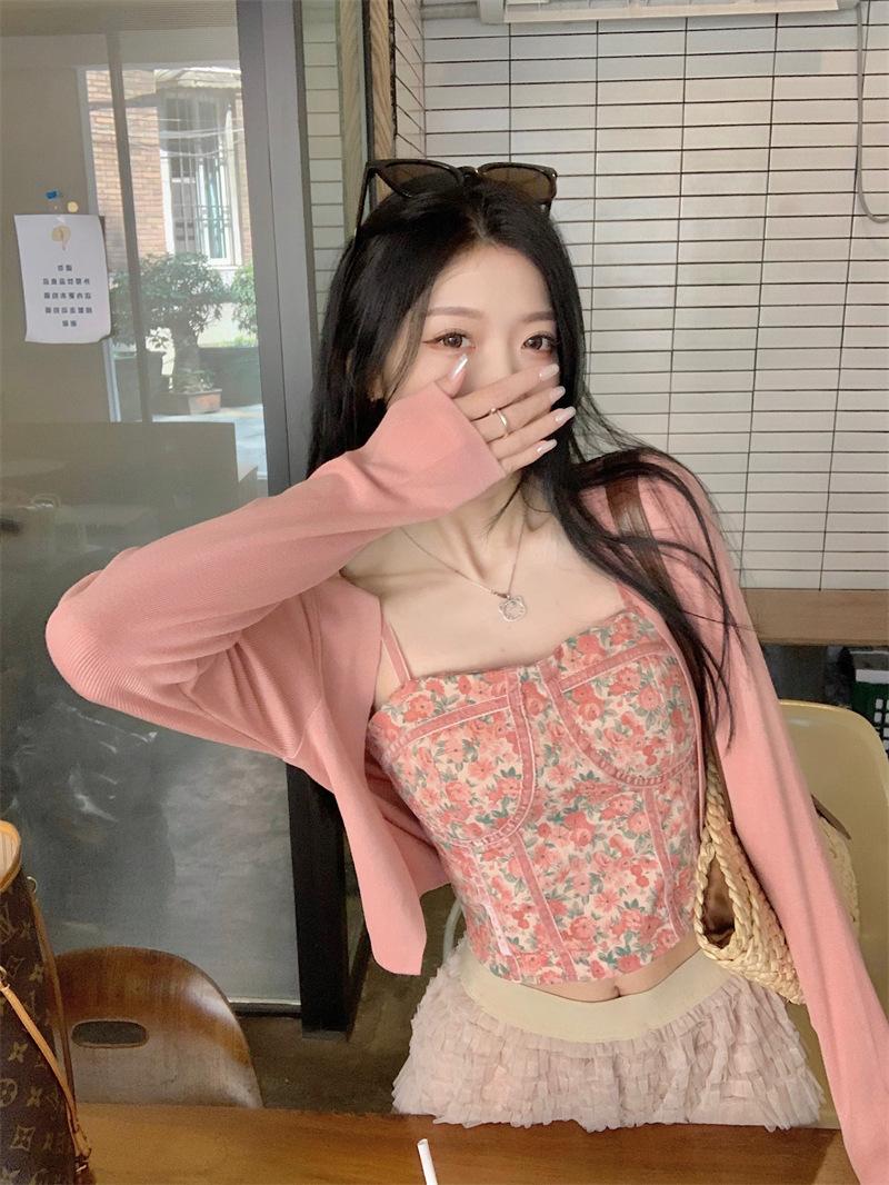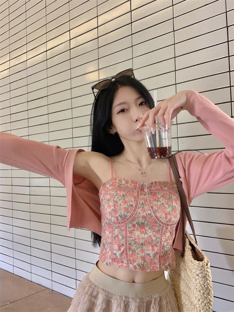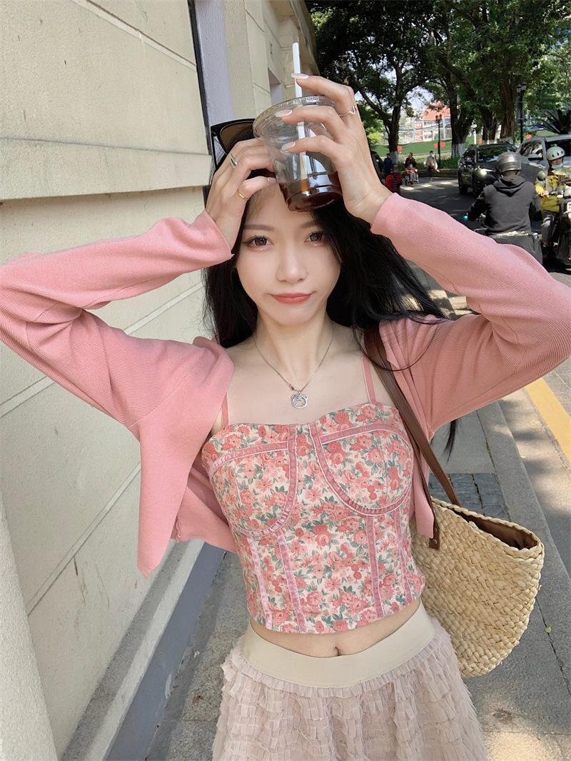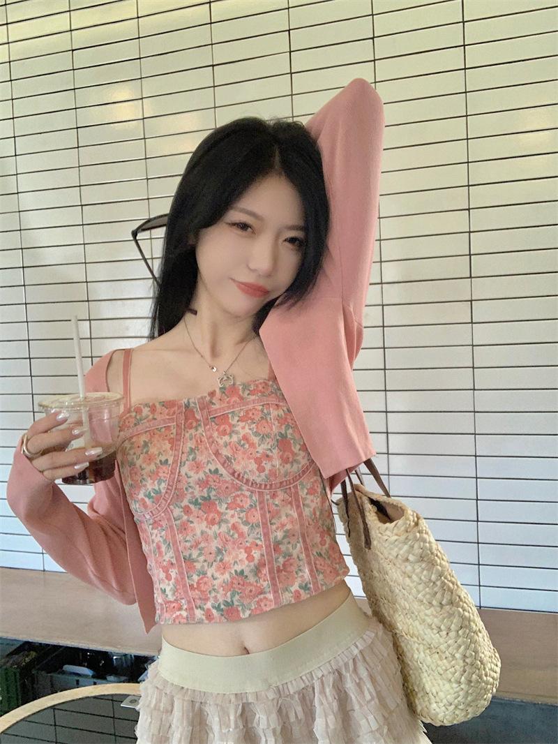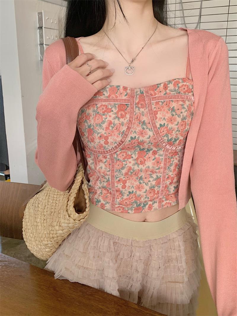 Moda Sexy Spice Girl Floral Sling para Mujer Primavera y Verano Nuevo Chaleco Corto Interior Ropa Exterior Chaleco Strapless para Mujer
