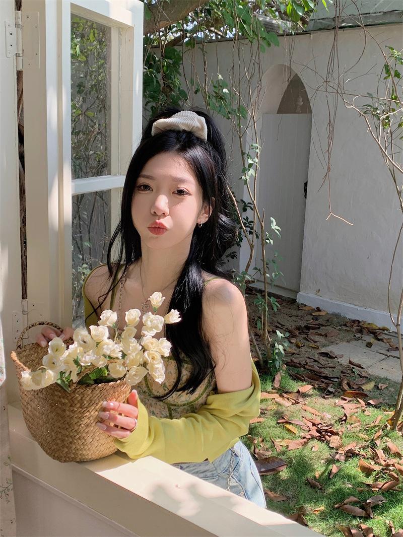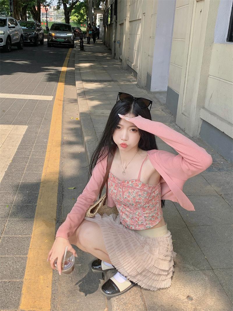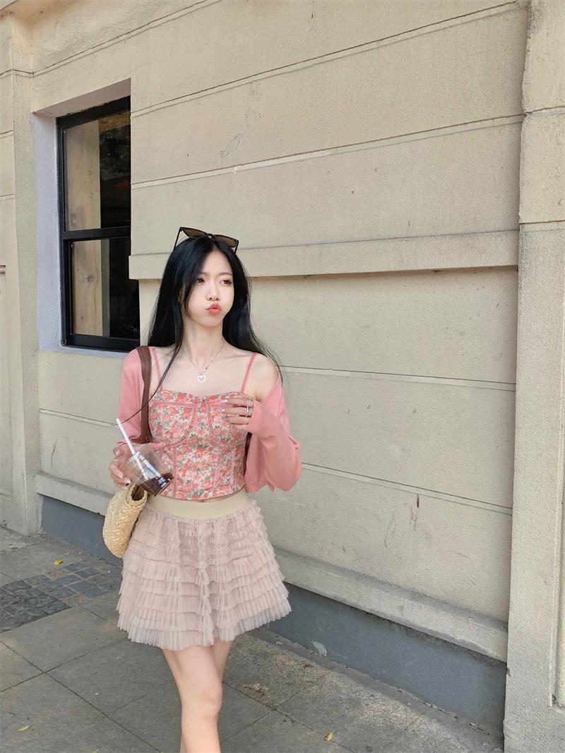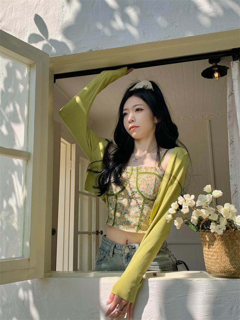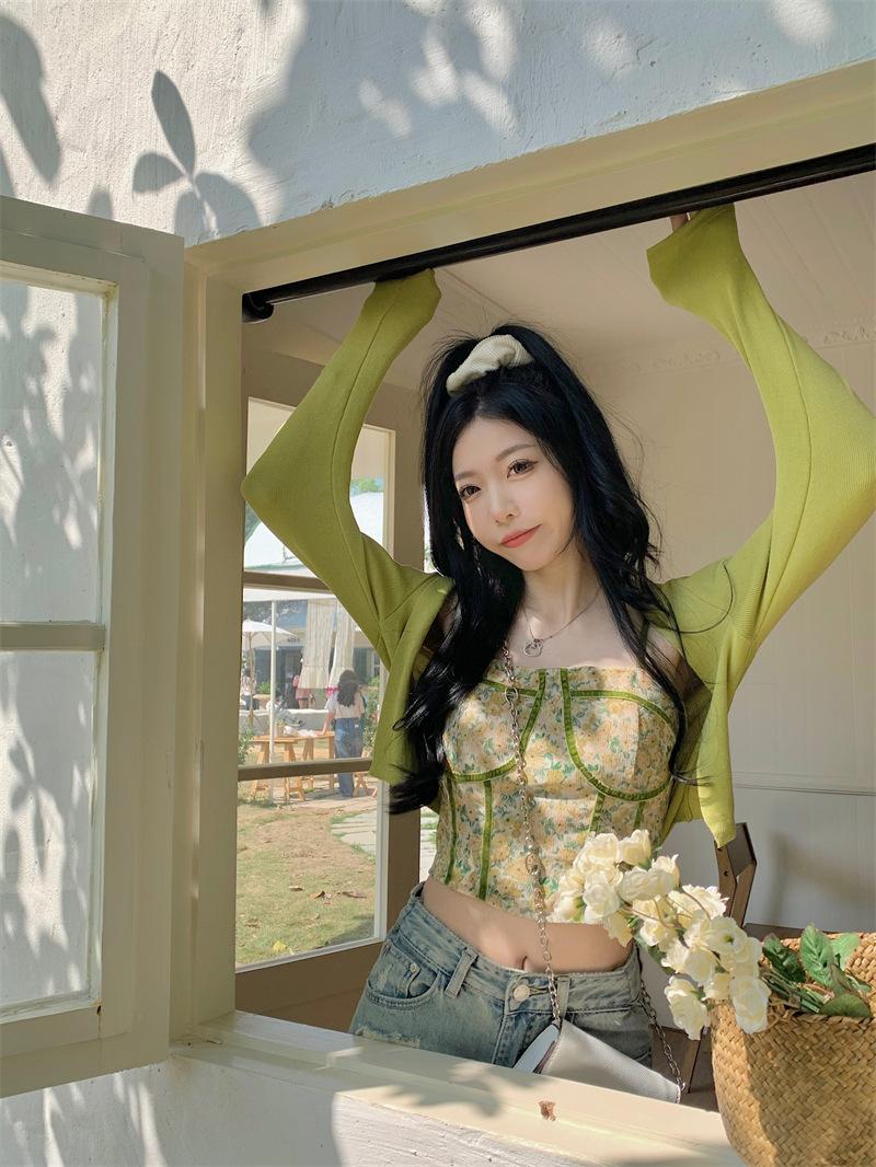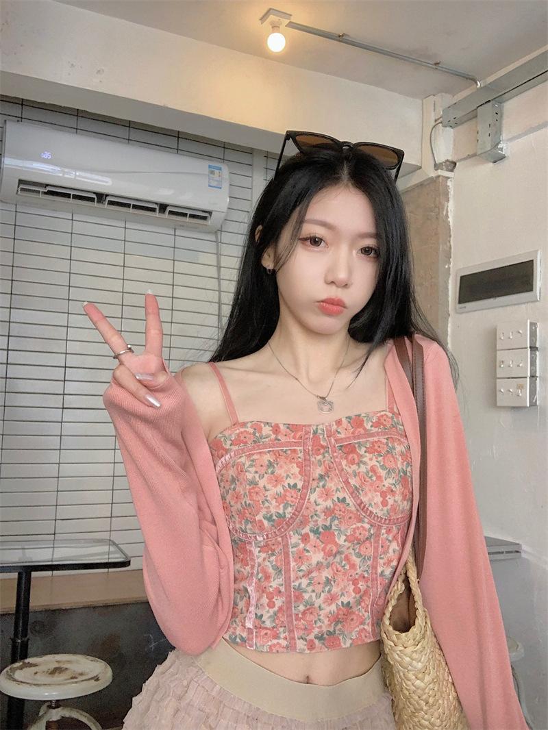 Moda Sexy Spice Girl Floral Sling para Mujer Primavera y Verano Nuevo Chaleco Corto Interior Ropa Exterior Chaleco Strapless para Mujer