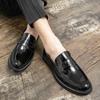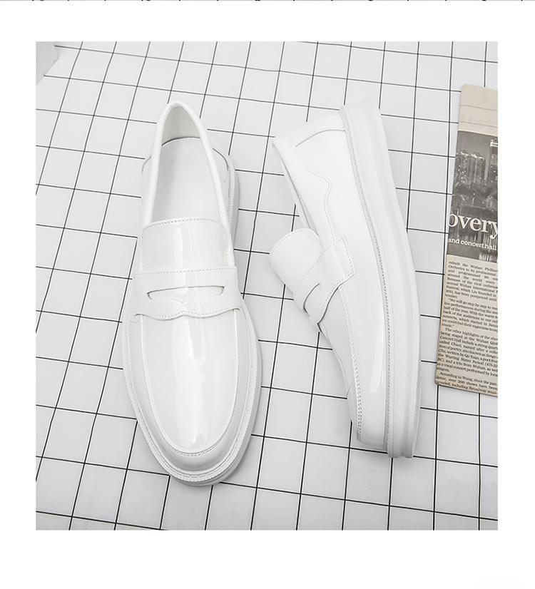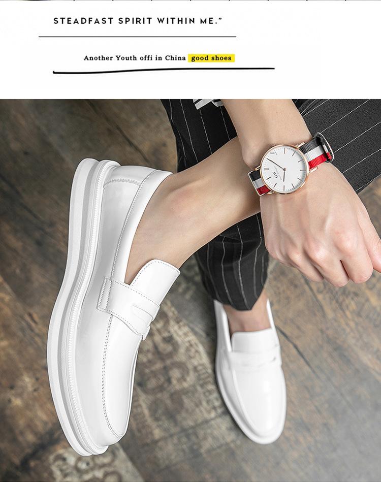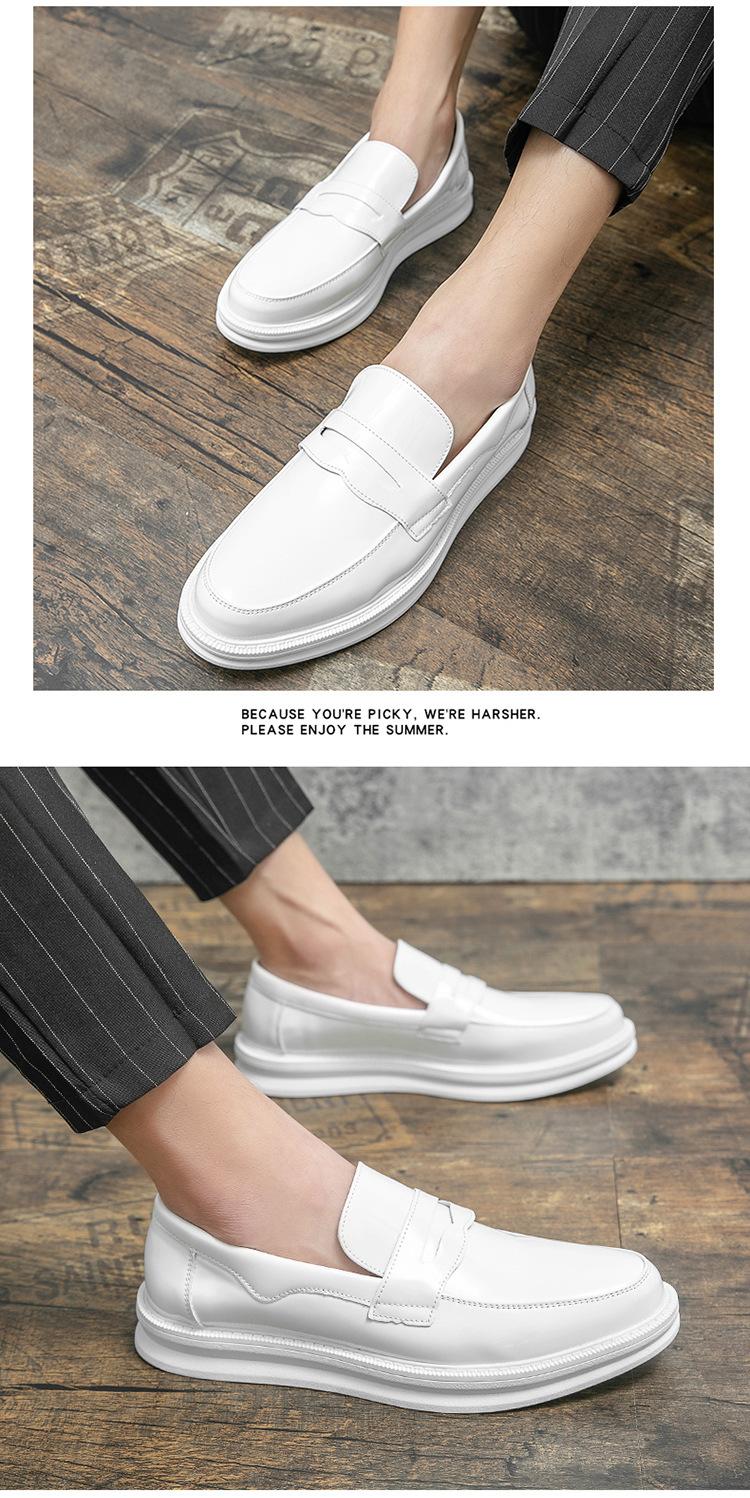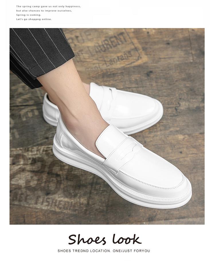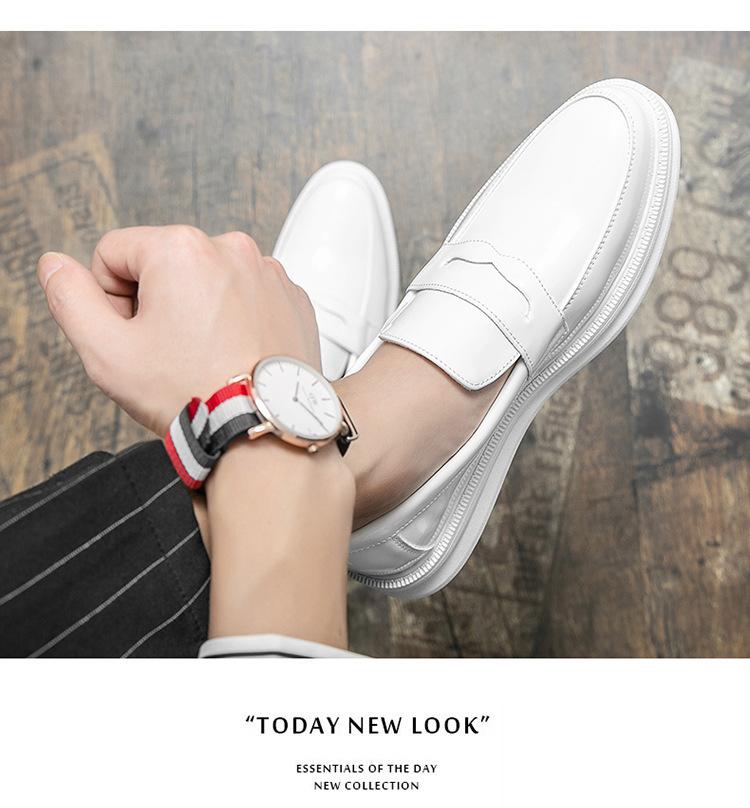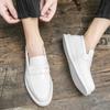 Zapatos de cuero blancos de primavera 2024, mocasines británicos para hombre, transpirables, combinables, informales, sin cordones, de cuero