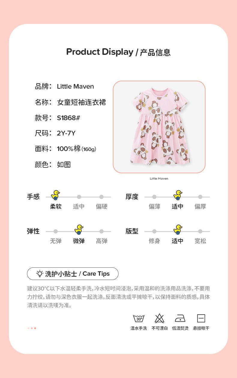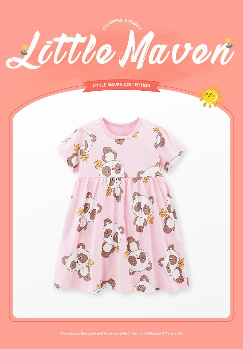 Falda de Verano para Niñas Little Maven Vestido de Princesa de Dibujos Animados Europeo y Americano Vestido Infantil de Algodón Estampado de Manga Corta