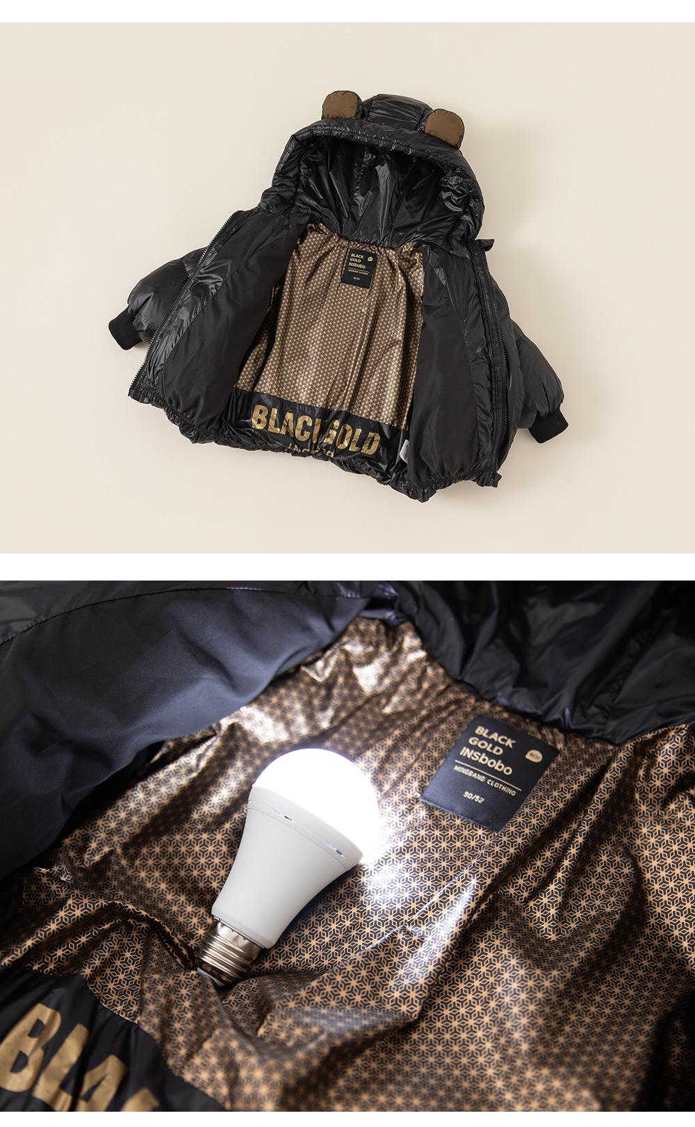 Ropa para niños Yubao, chaqueta de invierno nueva para niños, gruesa, de tres capas, negra y dorada, con capucha, abrigo cálido DY83042
