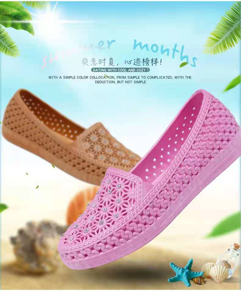 Zapatos de playa con agujeros de verano 2024 zapatos casuales de madre sandalias planas integradas transpirables de suela gruesa de suela blanda de punta cerrada